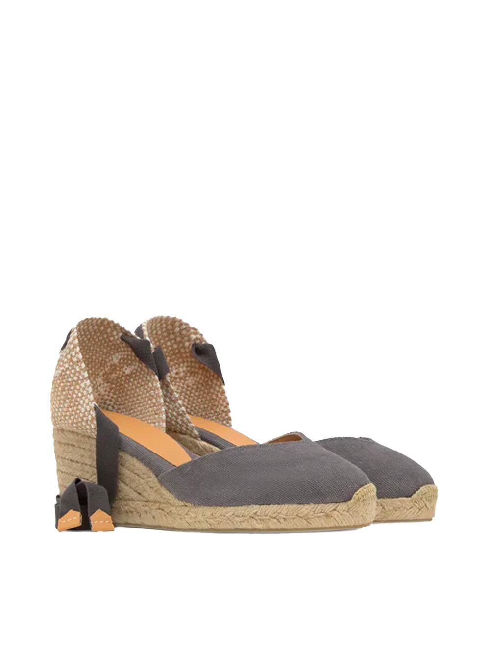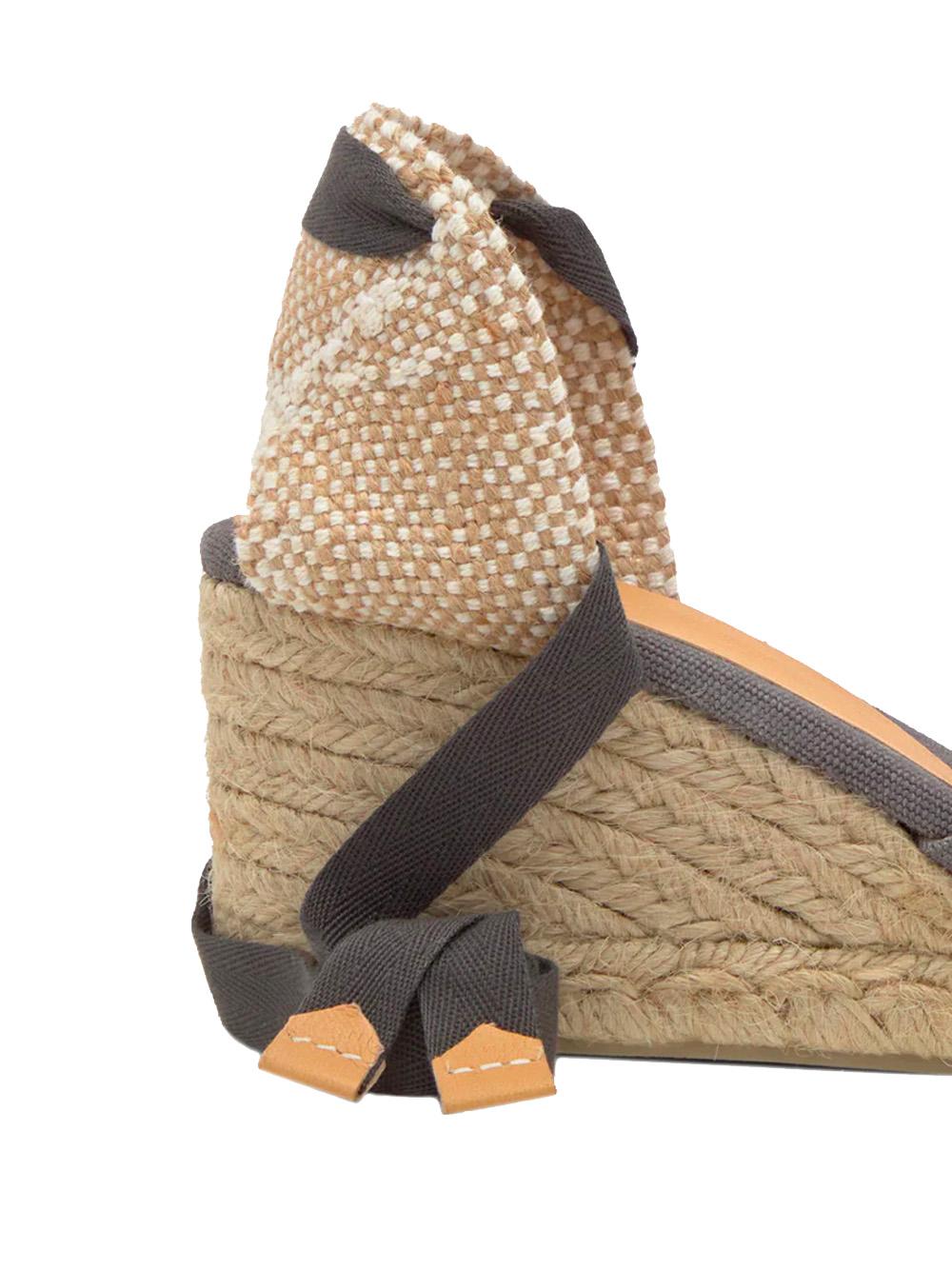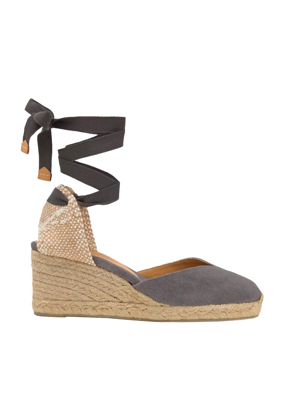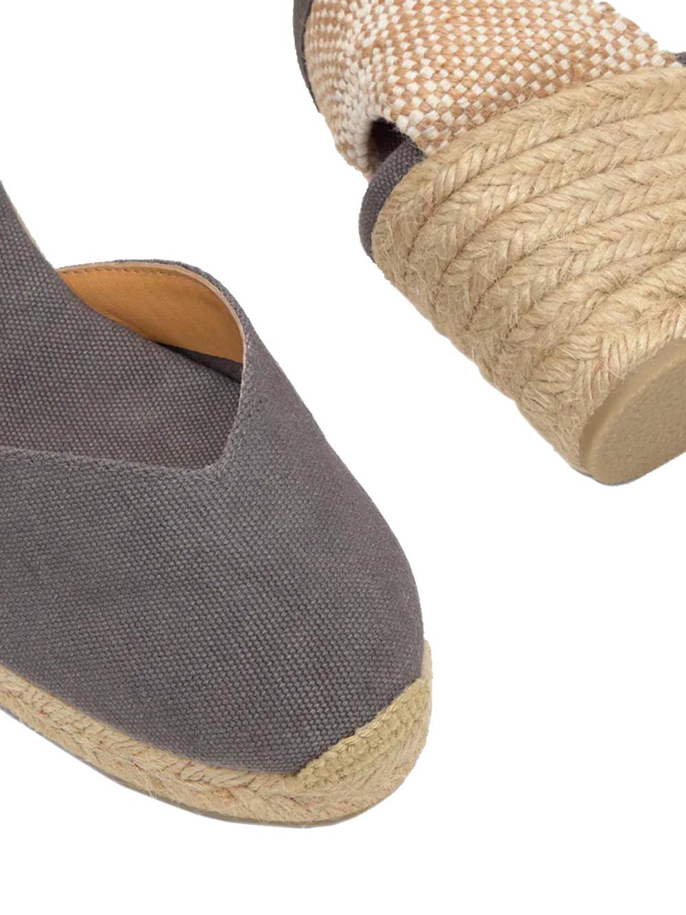 - Iconic Chiara espadrille in washed organic cotton with ribbon closure, padded insole, V-neckline, and