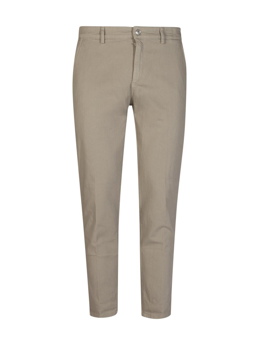 - Button and zip closure, front American-style pockets, back pockets with flap and button, slim cut, cropped length, logo label