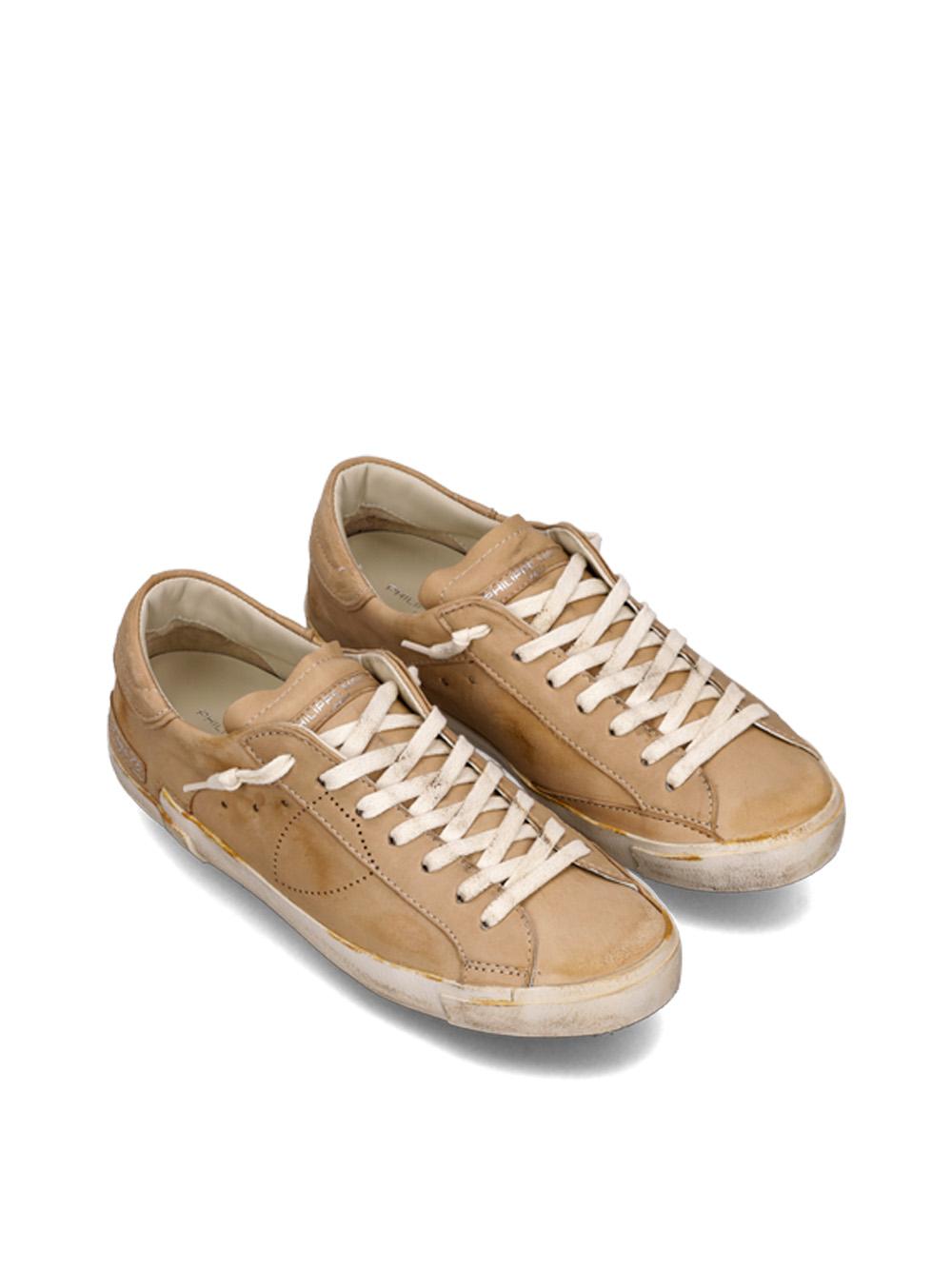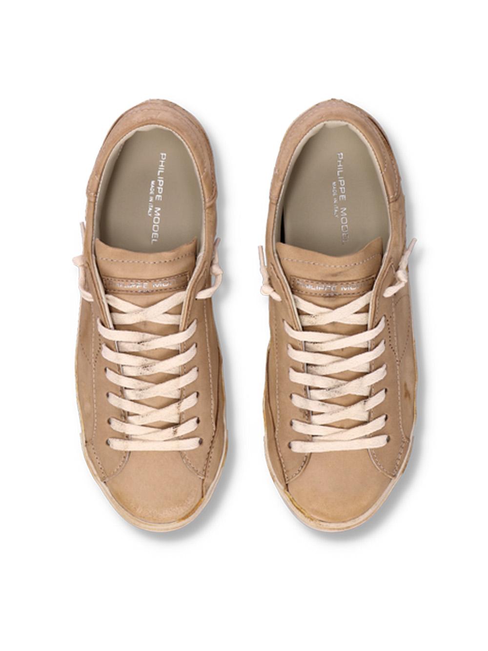 - Low-top Paris sneaker in washed calf leather with a distressed effect.