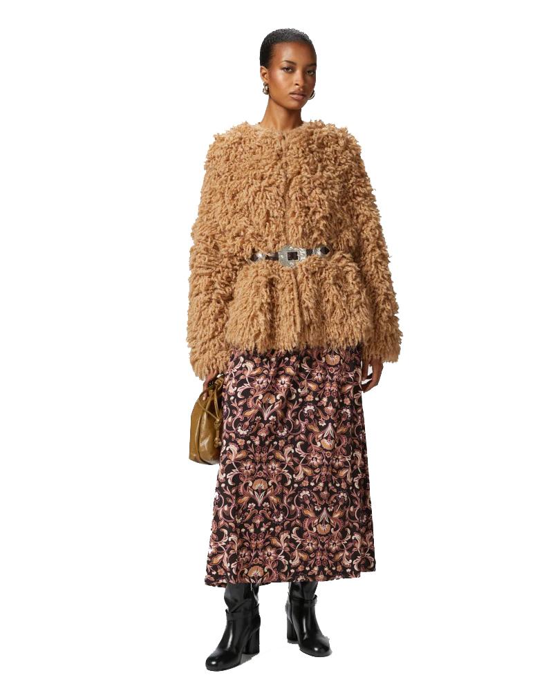 CLOAK WITH FUR EFFECT IN CAMEL COLOR
