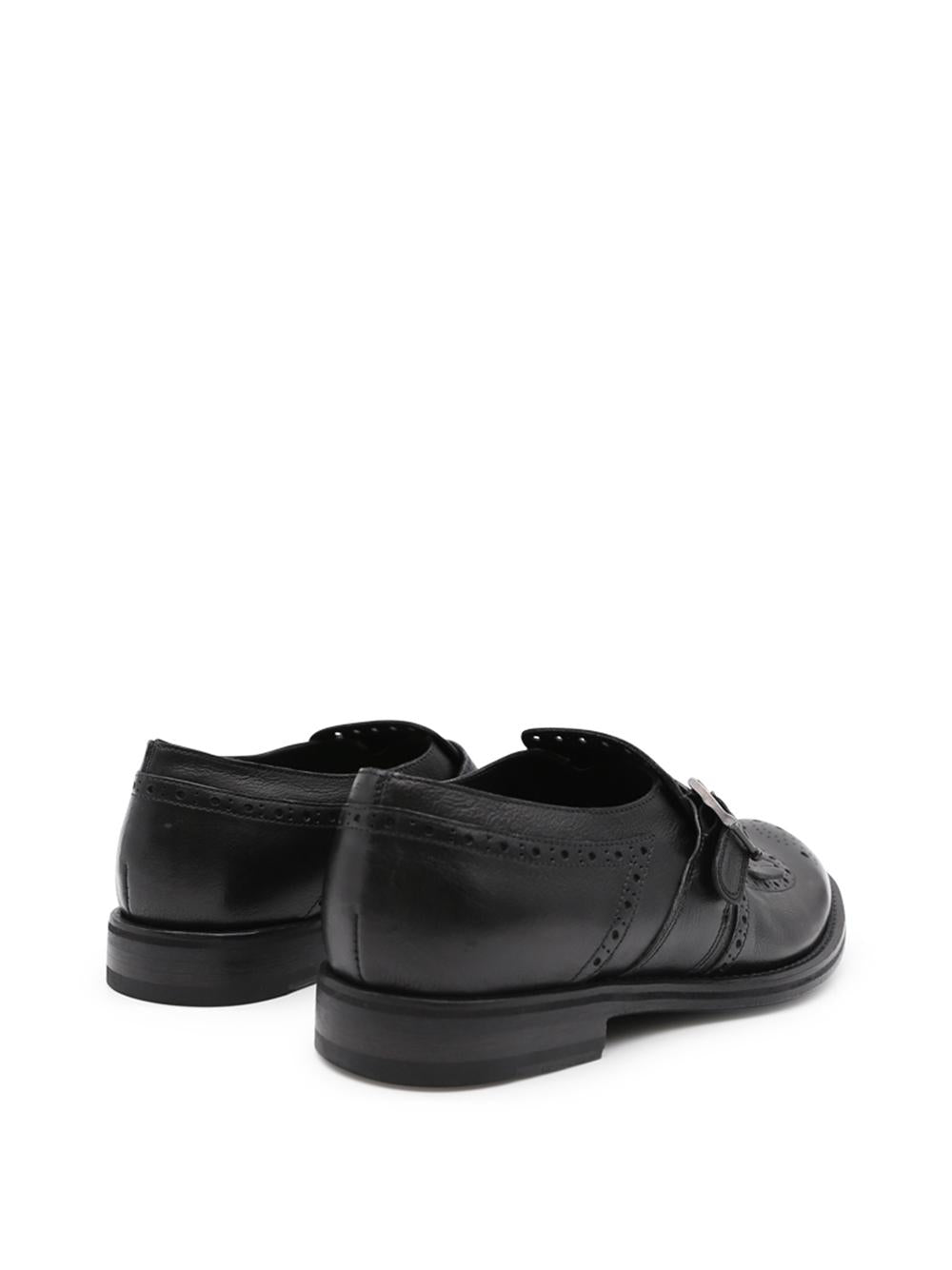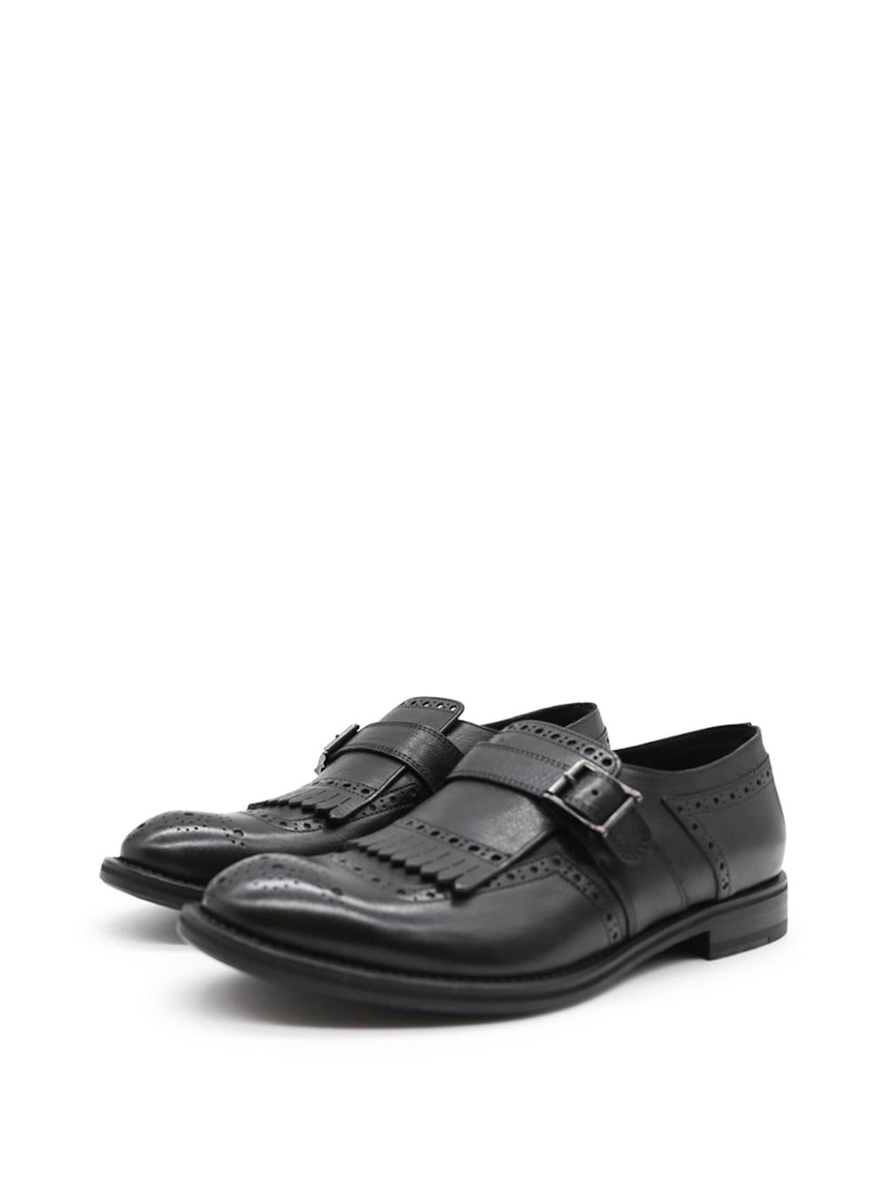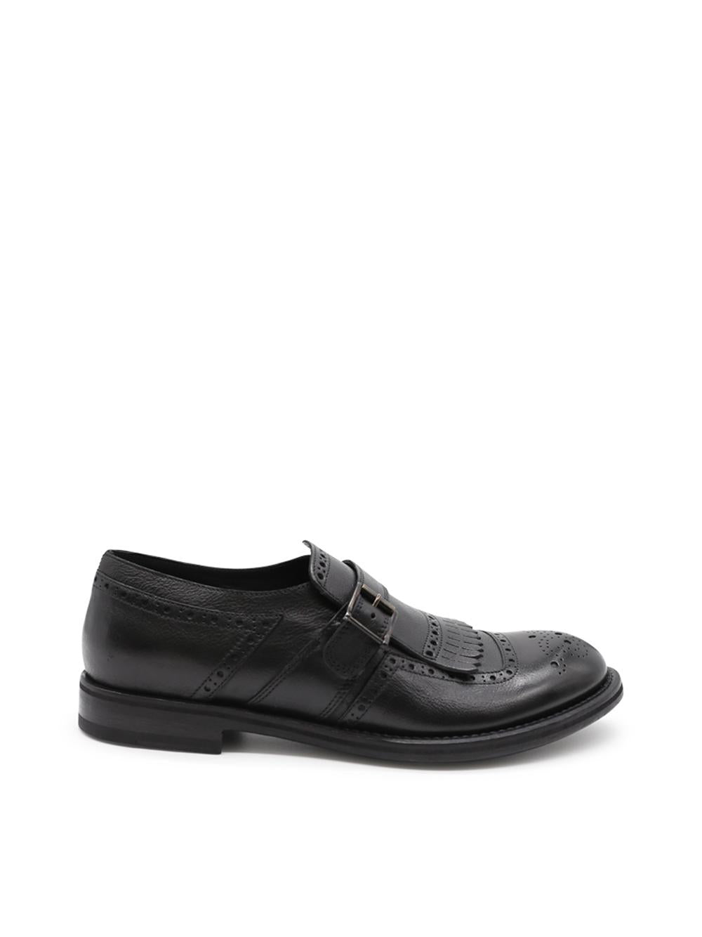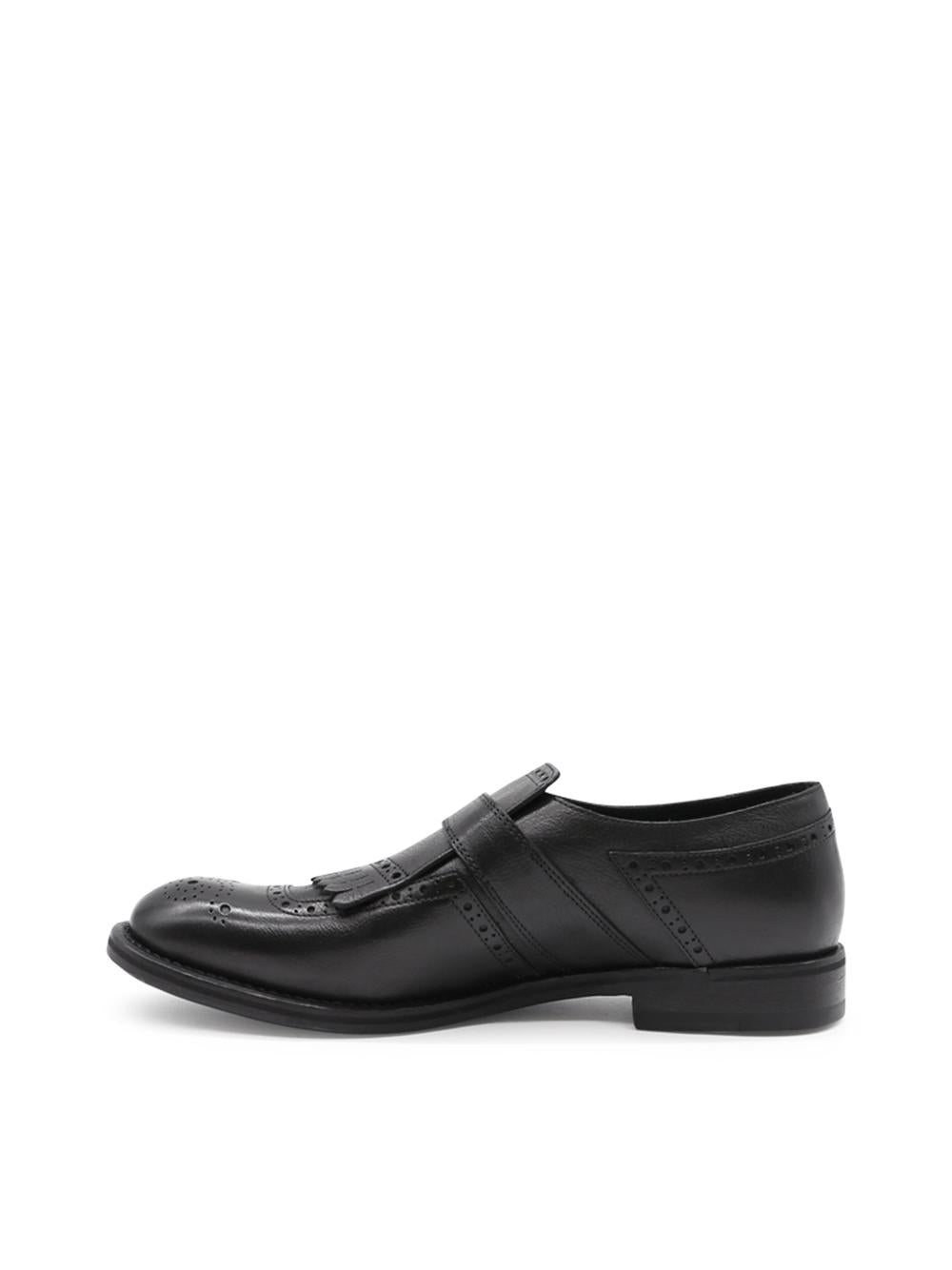 Single-buckle moccasin in black leather with fringes