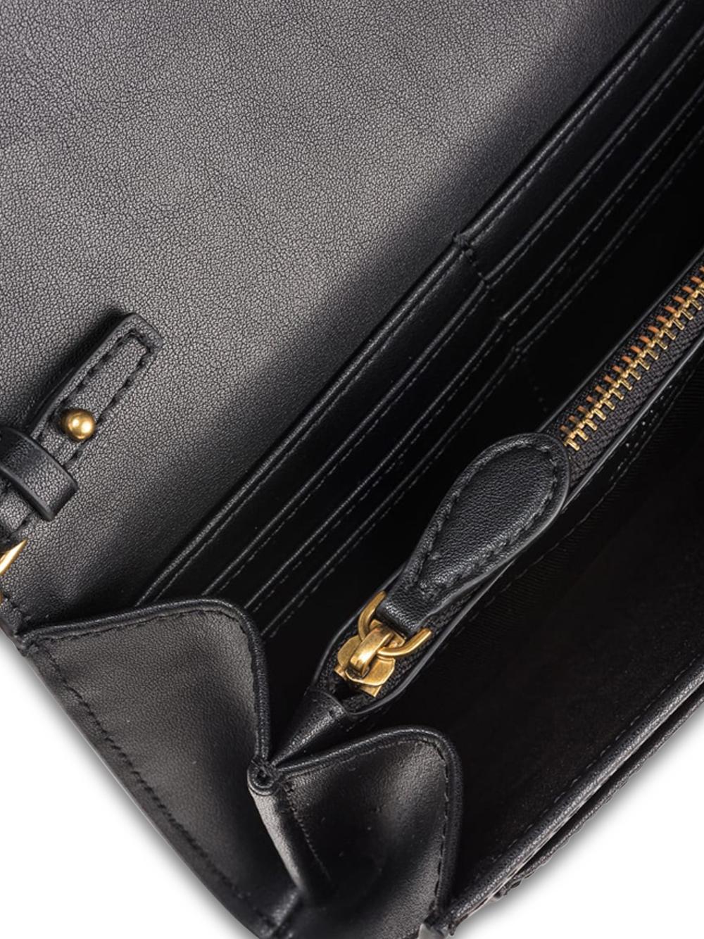 - The round chain metal shoulder strap allows you to carry the wallet like a crossbody bag and is removable