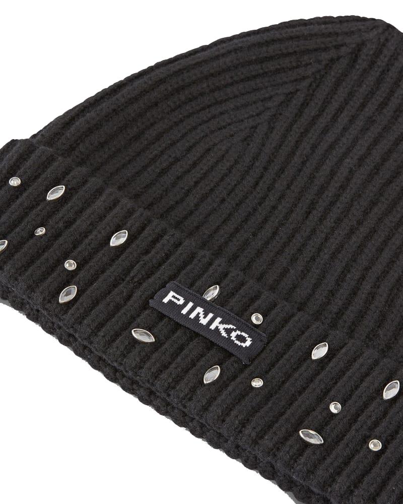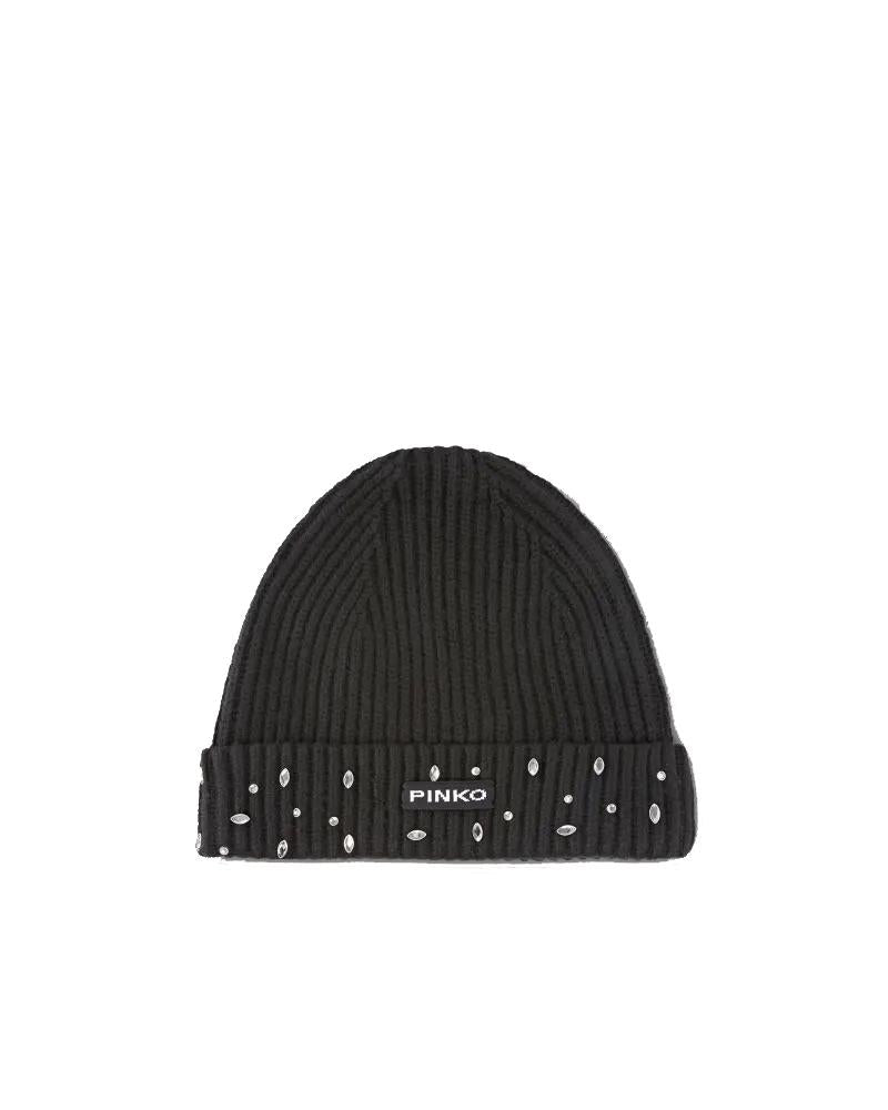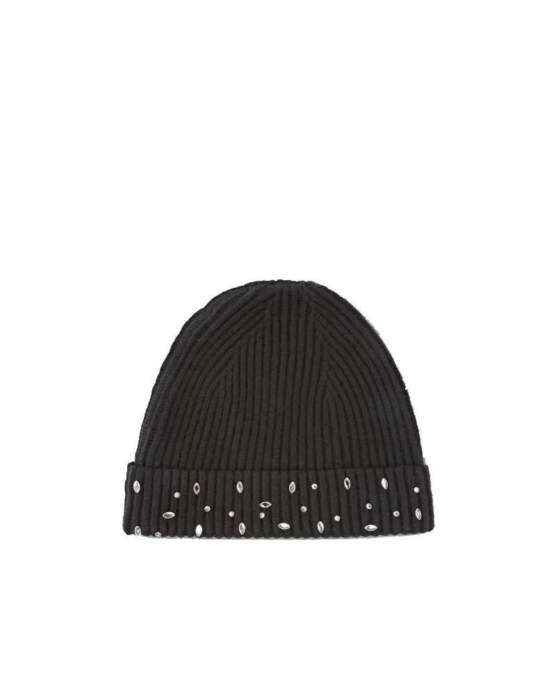 • Beanie style cap in a wool and cashmere blend with English ribbing and a precious detail of applied crystals.