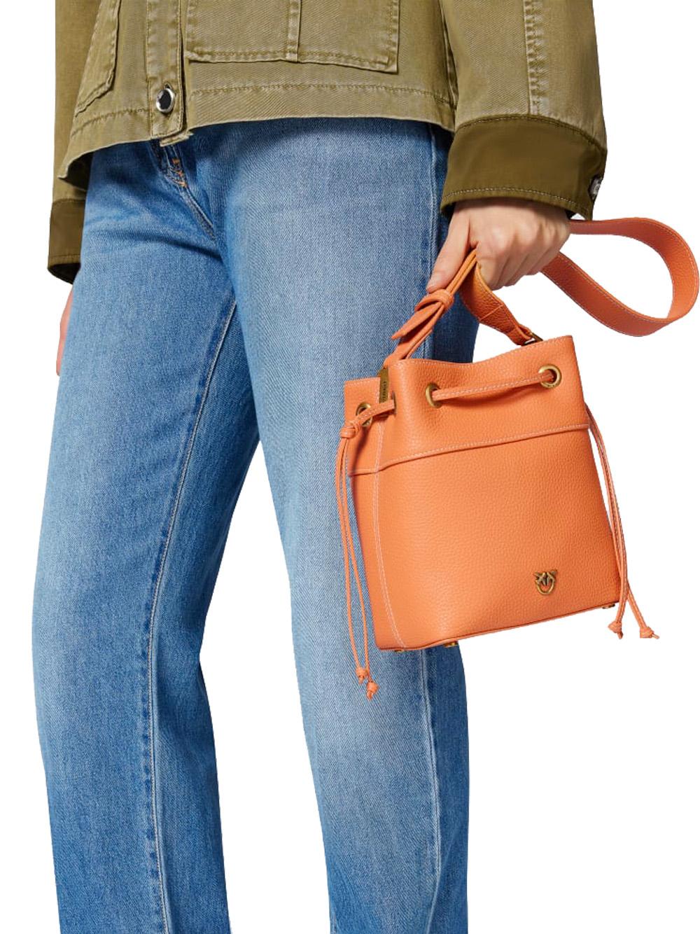 • Shoulder bag with a classic bucket shape made of fine pebbled leather