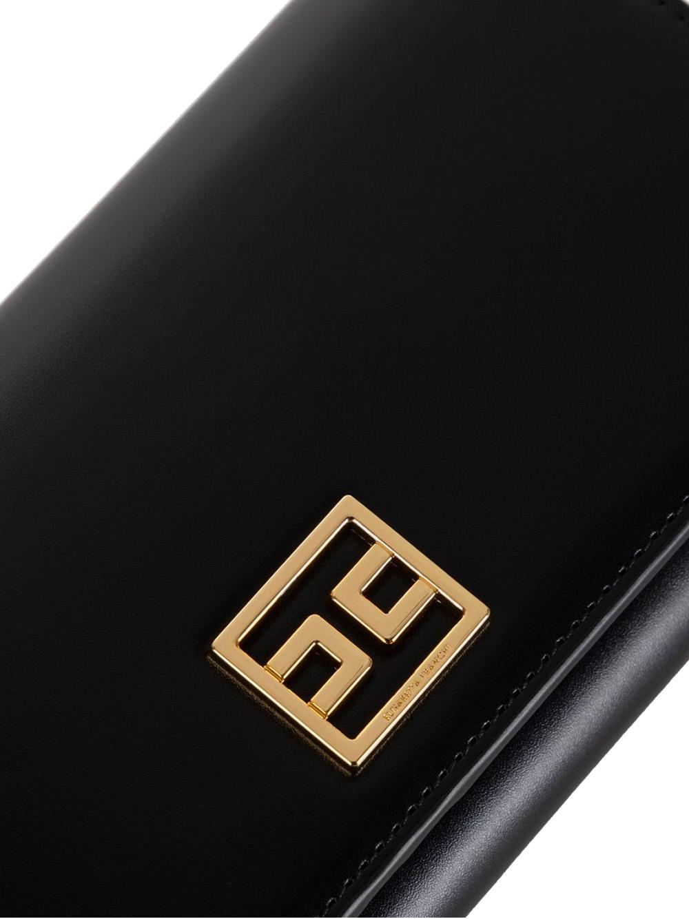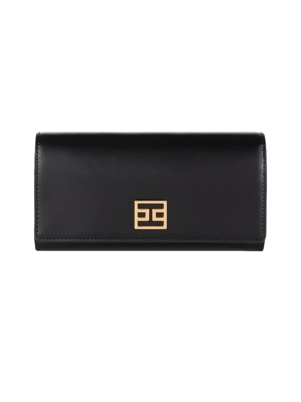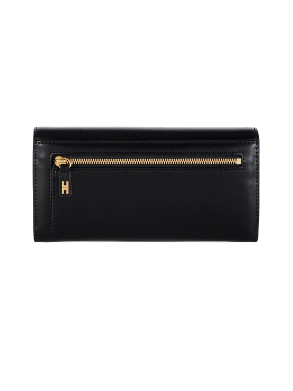 - Large wallet made of synthetic material with a leather effect and glossy textures.