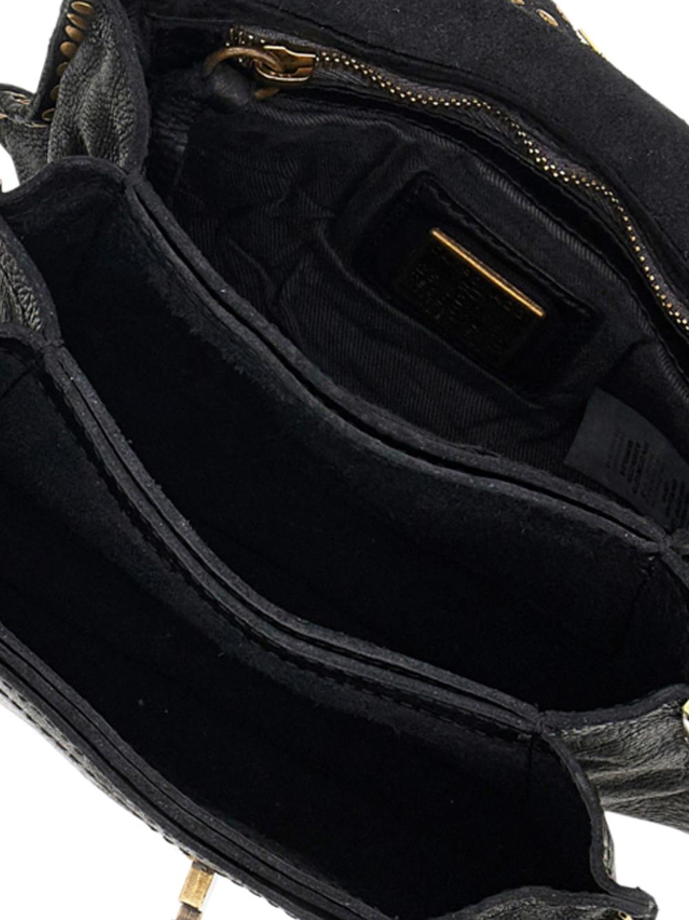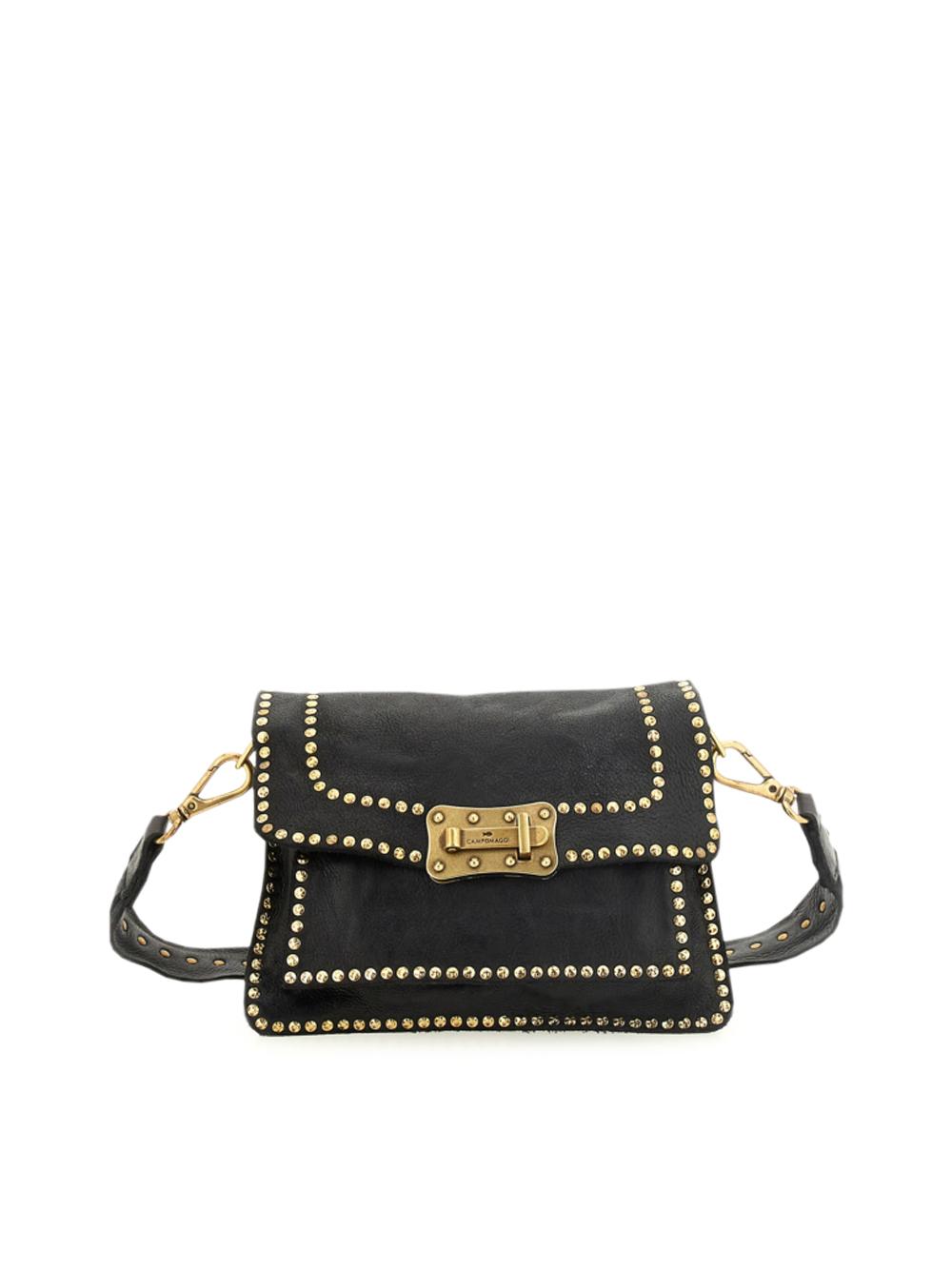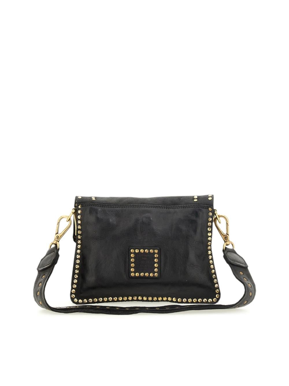 Borsa a tracolla " Agnese" in pelle nera con borchie e chiusura clip