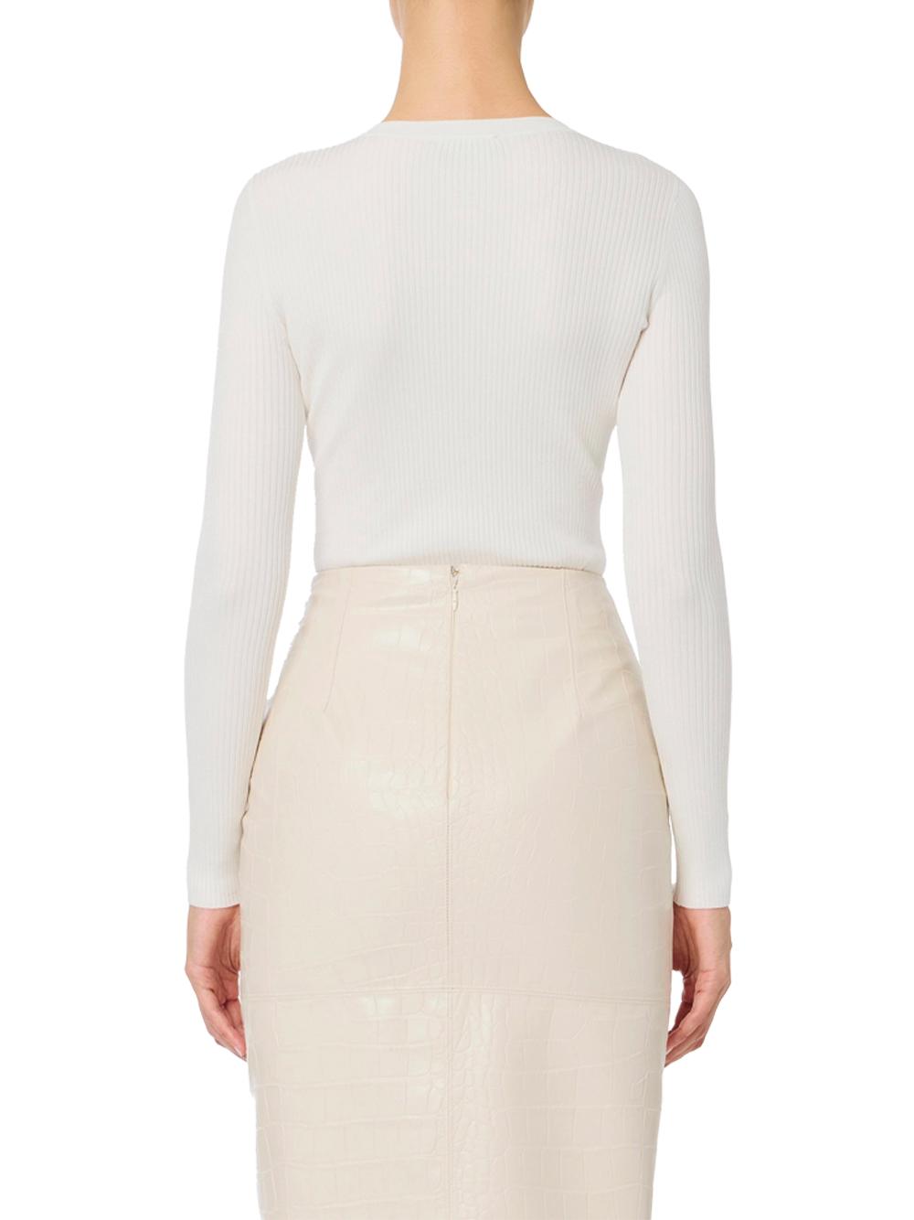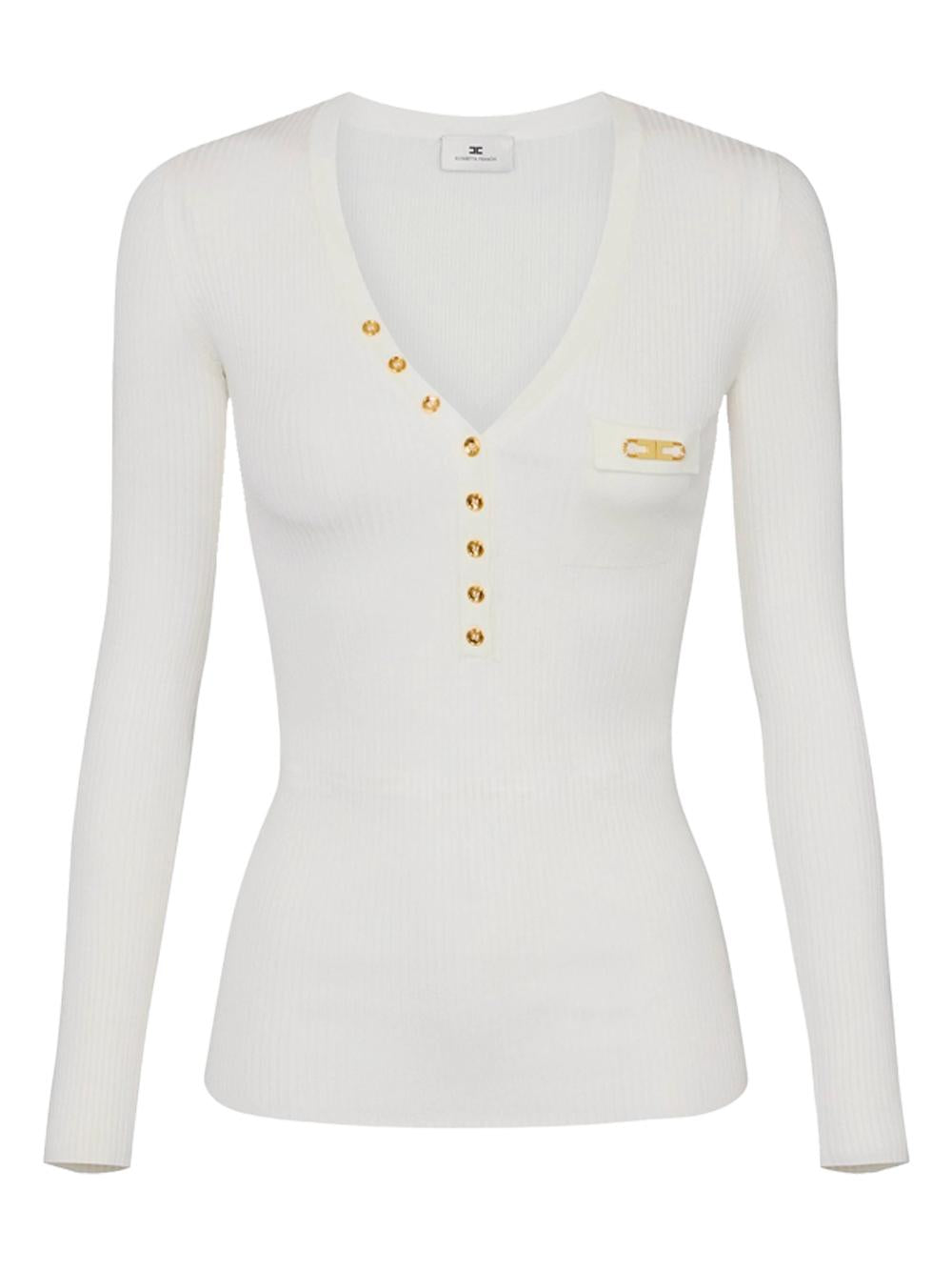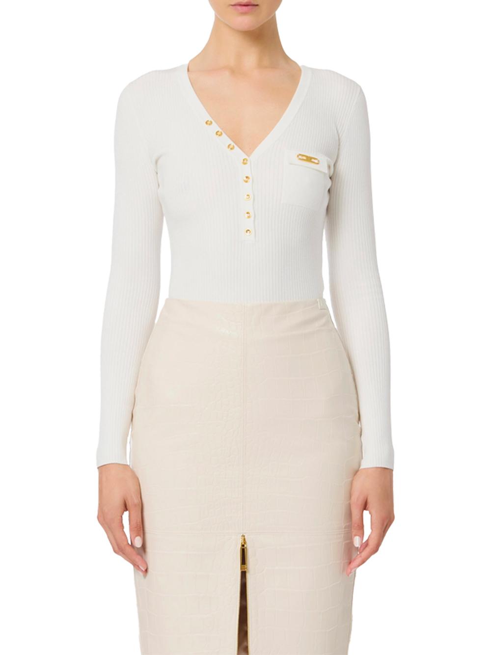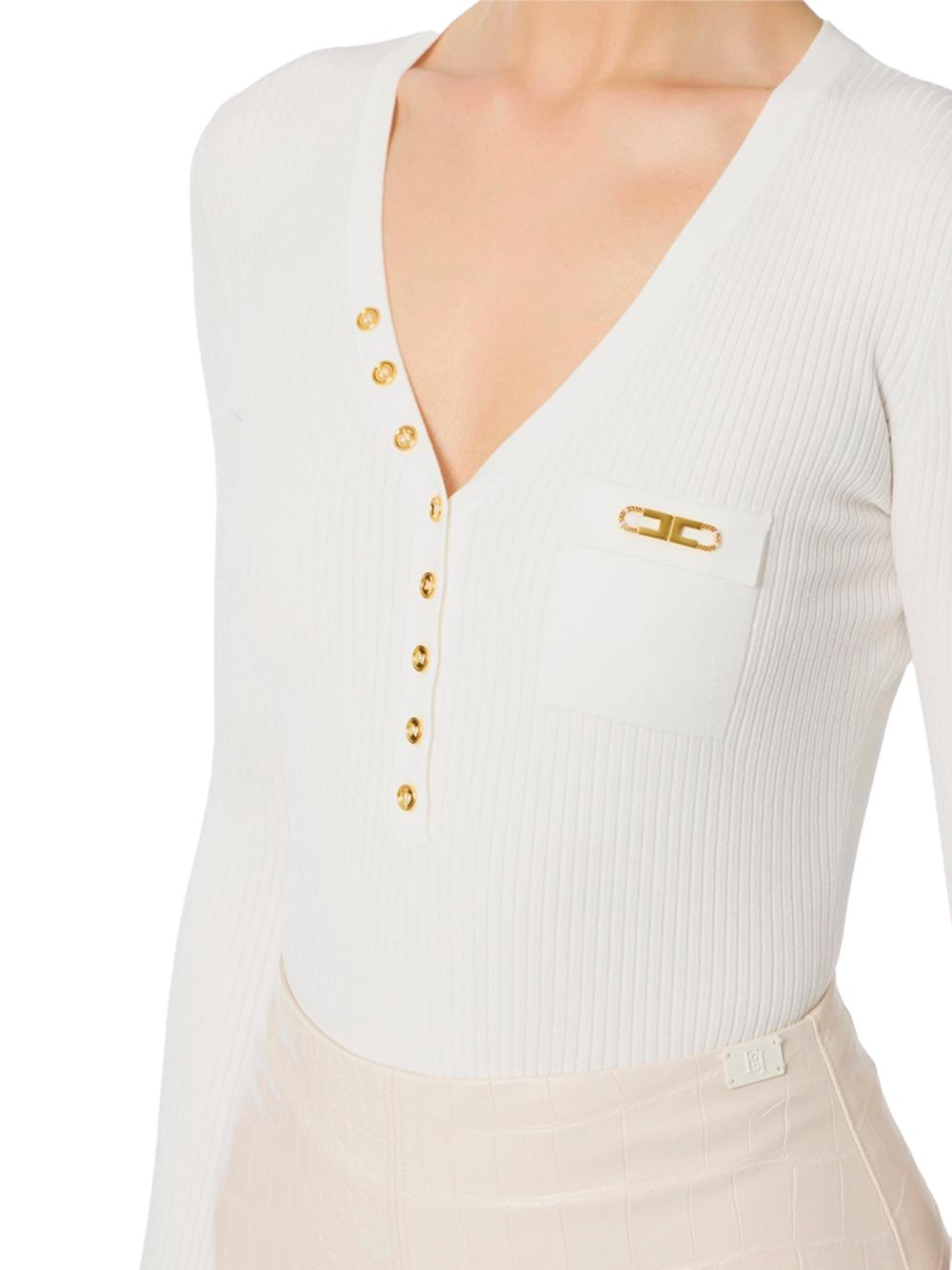 Maglia bianca a costine con taschino e bottoni