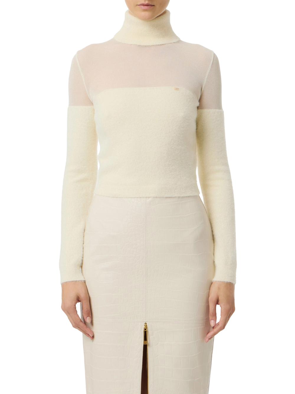 Dolcevita knit sweater in milk color with jewel logo