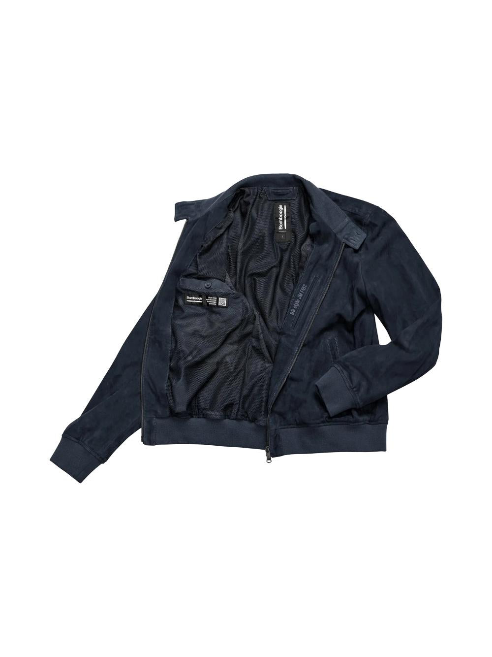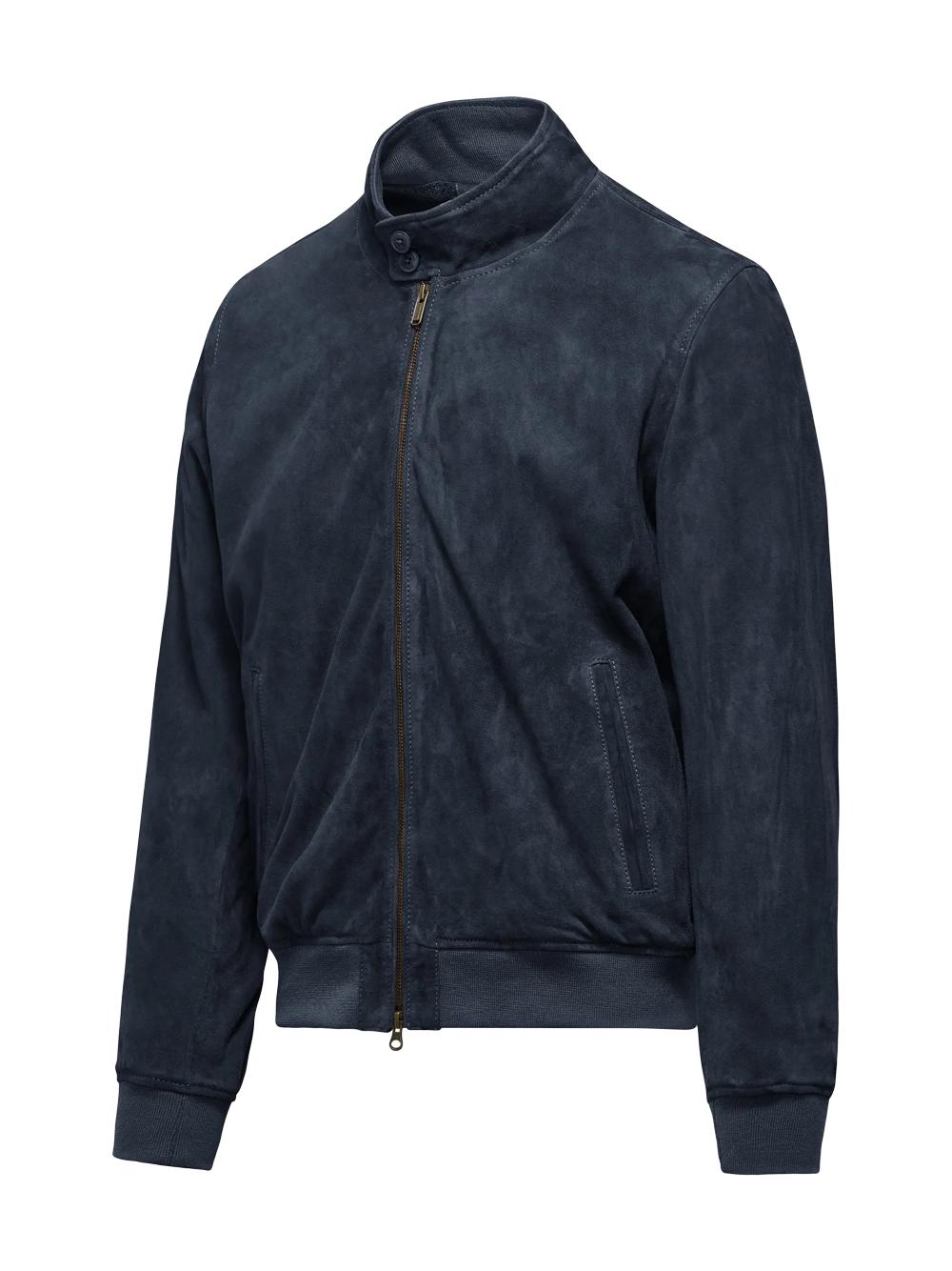 • The Friz leather bomber jacket is an iconic model characterized by a high collar closed by two buttons. For spring, Bomboogie offers it in a suede version.