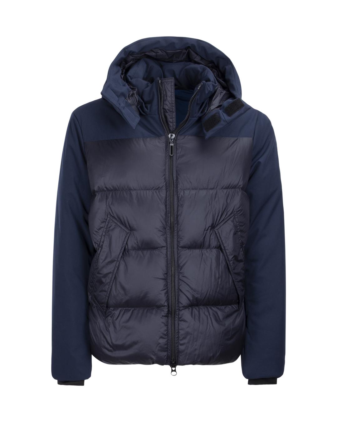 Blue bi-material down jacket