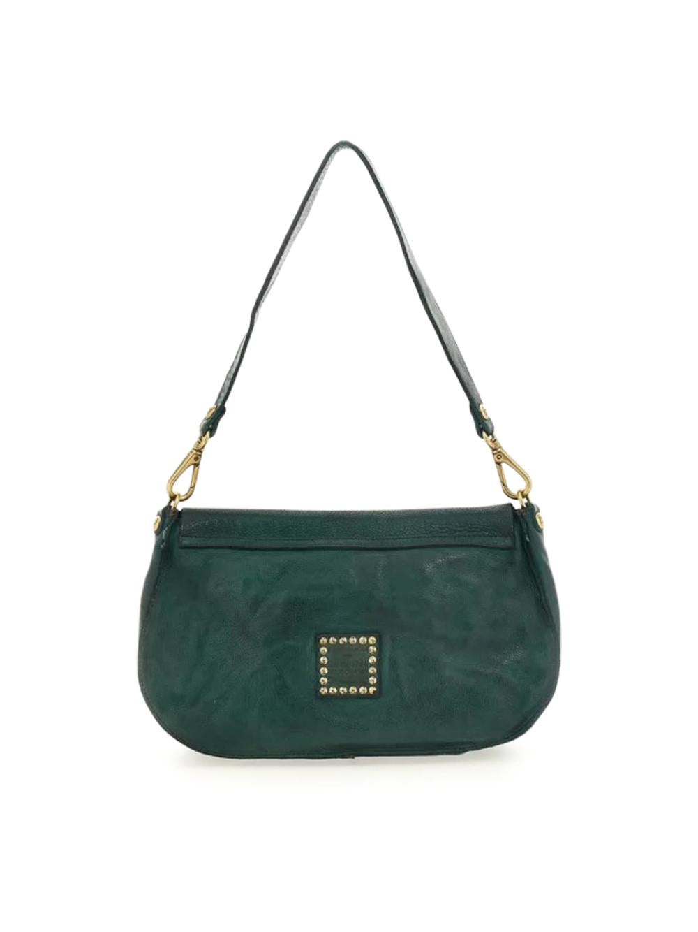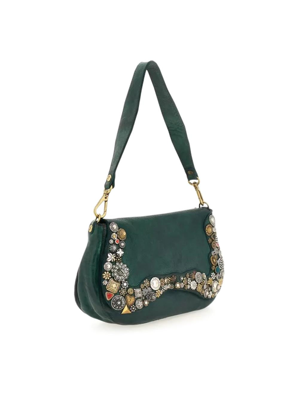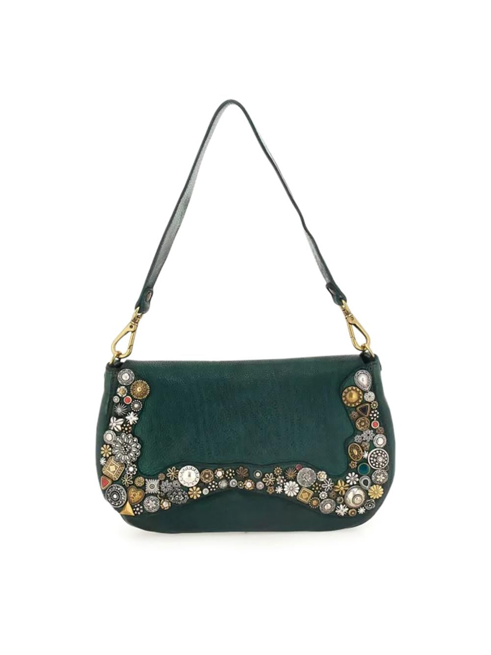 BEAUTIFUL NIGHT BAG IN GREEN LEATHER WITH STUDS AND STONES