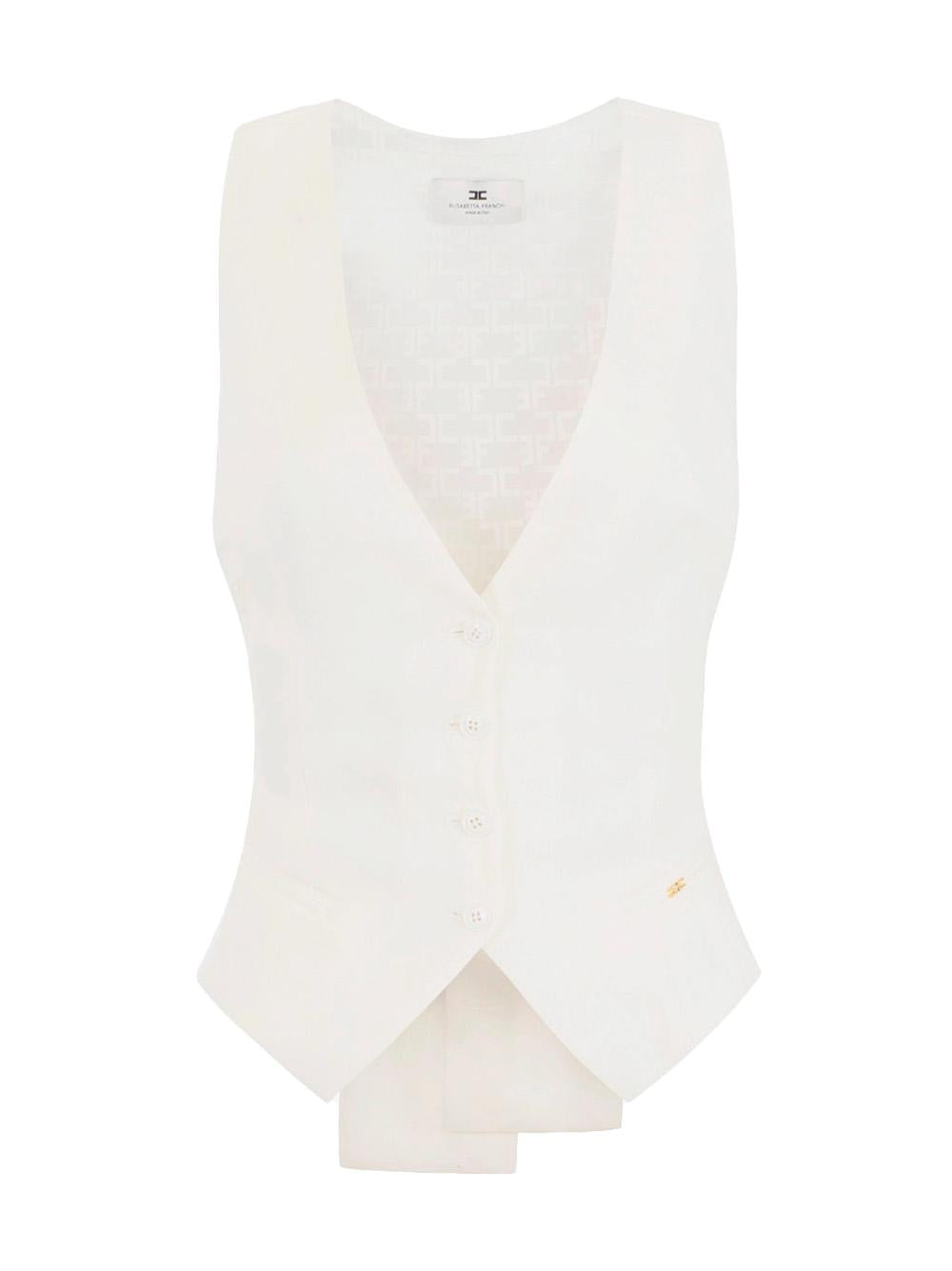 - Gilet in gabardine made of linen blend. It stands out for the elastic and the sash to tie at the back.