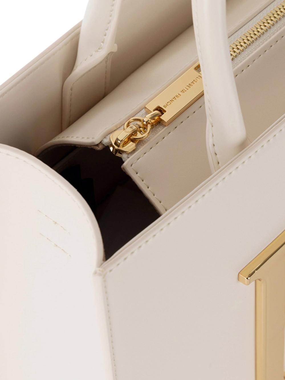 - It features a large EF metal plate in gold and a double C logo wrapped.