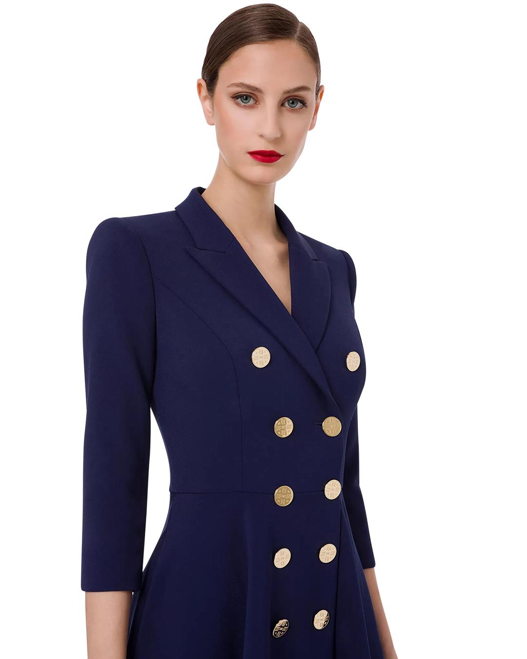 Robe Manteau blue mini dress with gold double-breasted buttoning