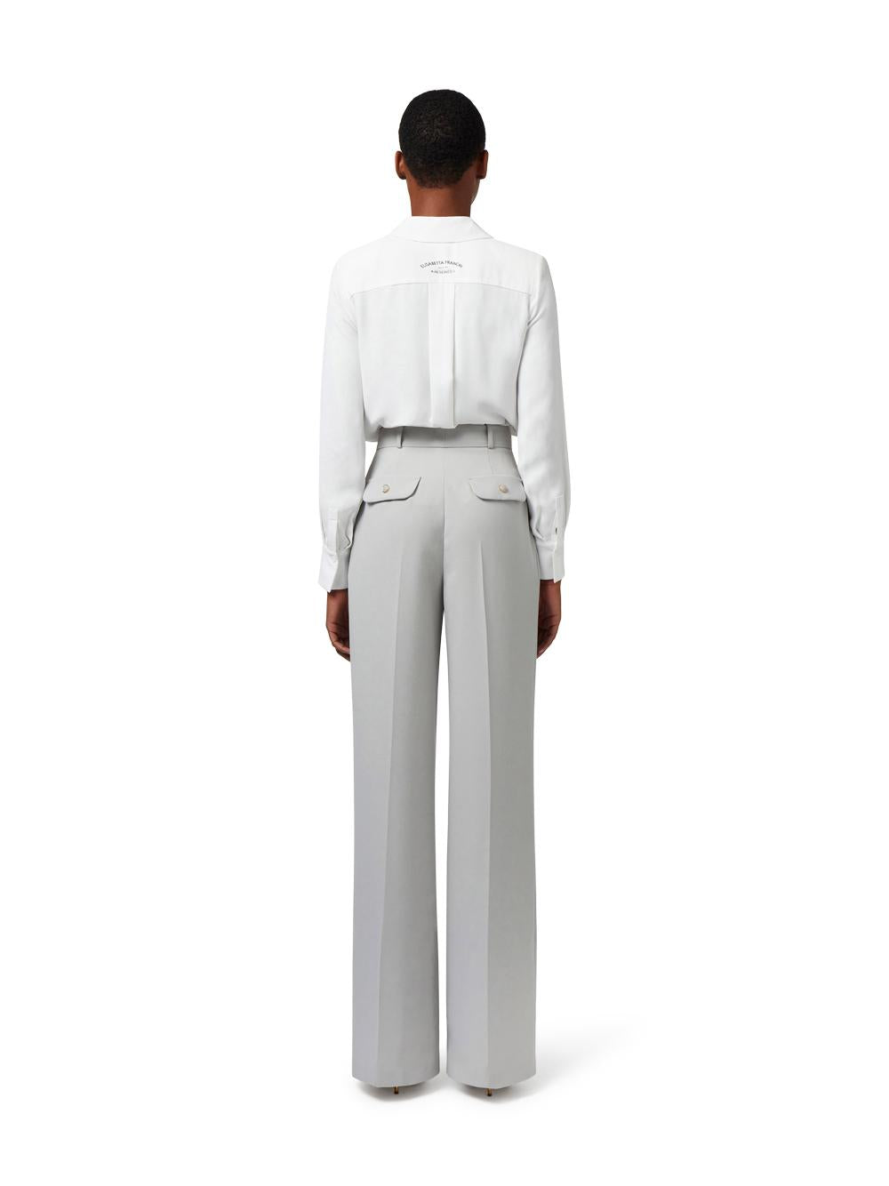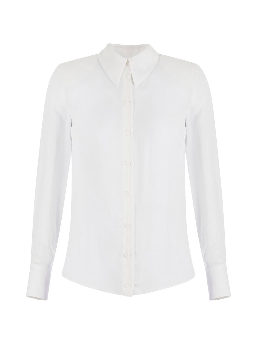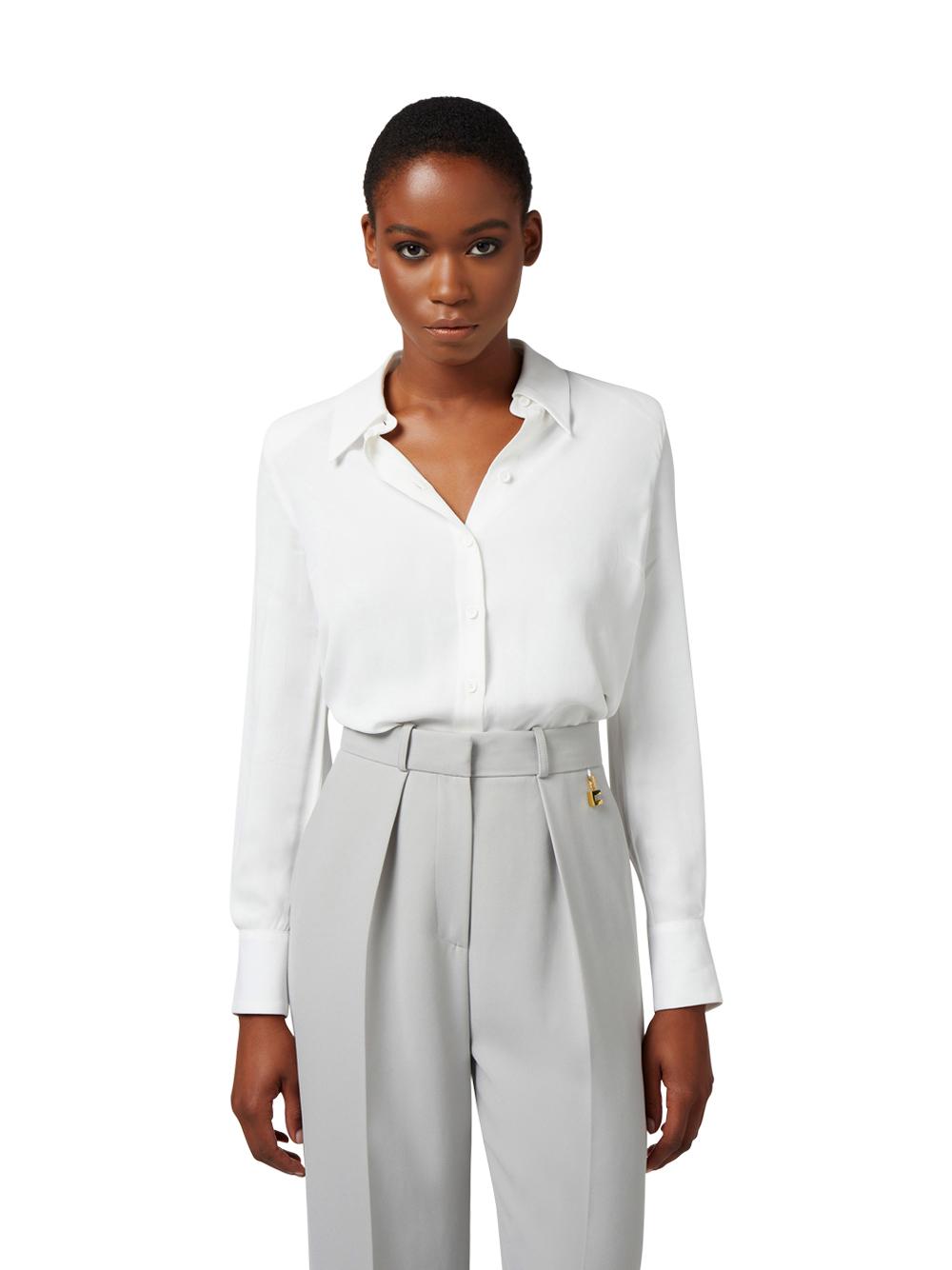 - Long-sleeved shirt in viscose georgette with breast-level flap pockets