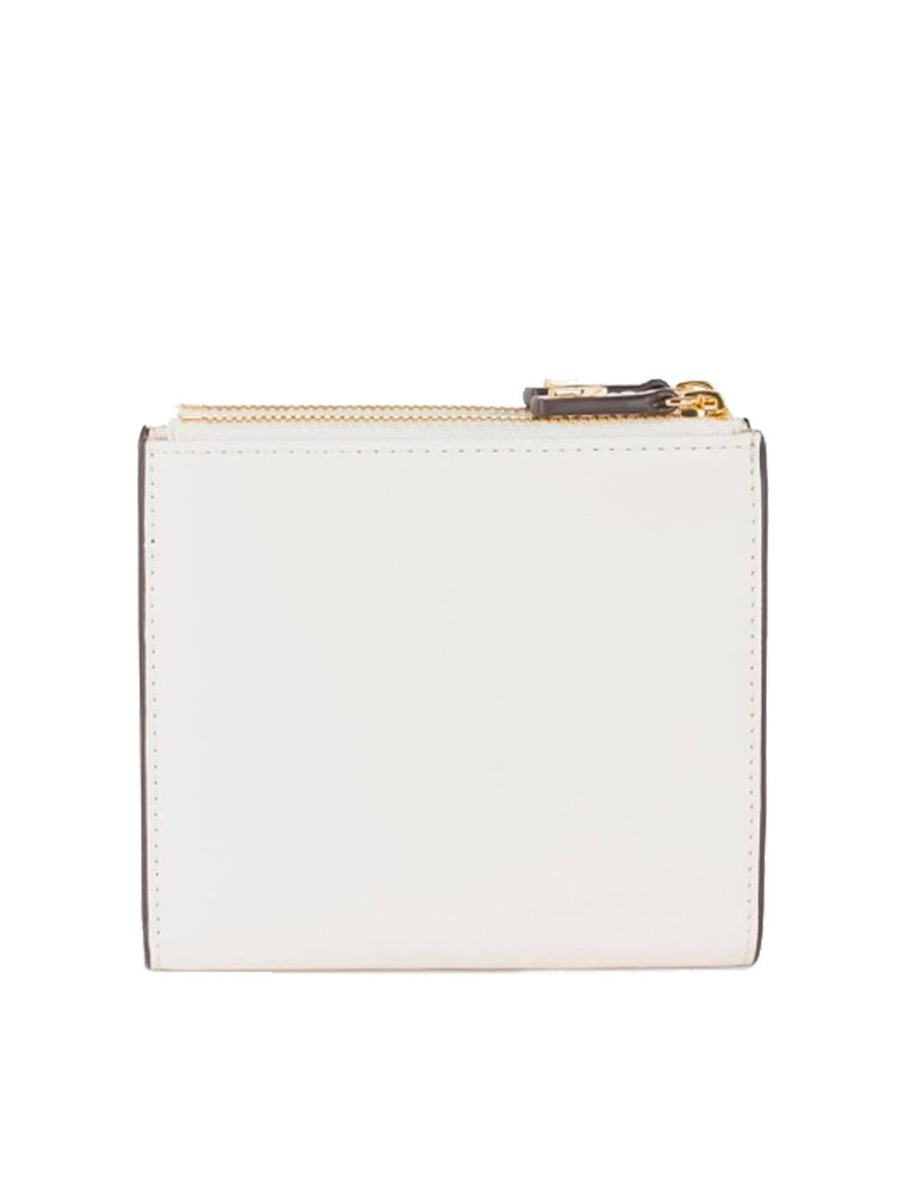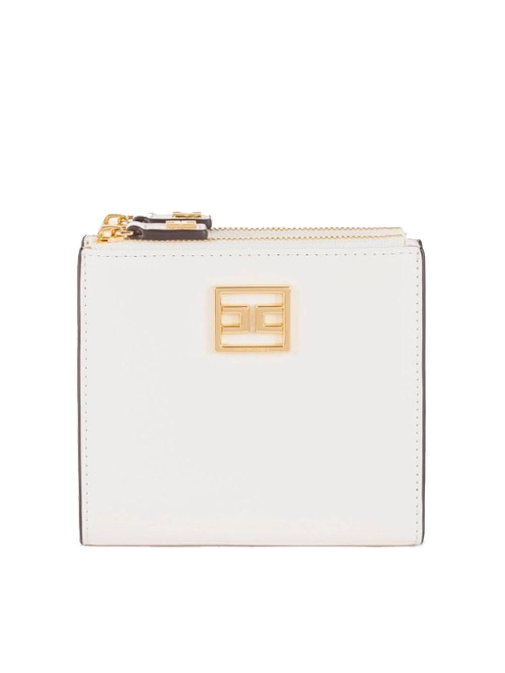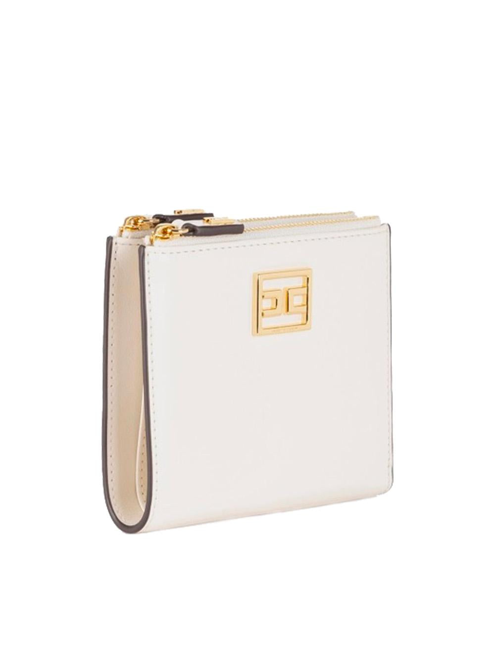 - Bifold wallet made of synthetic material with a leather-like effect and glossy textures.