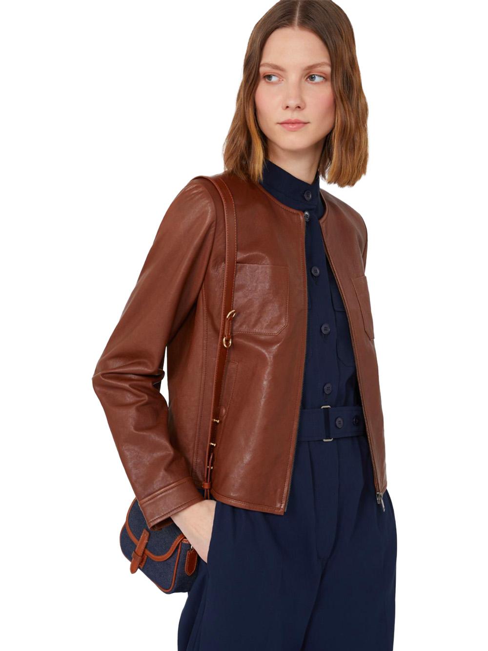 - Cropped jacket with chest pockets and side pockets with snap button.