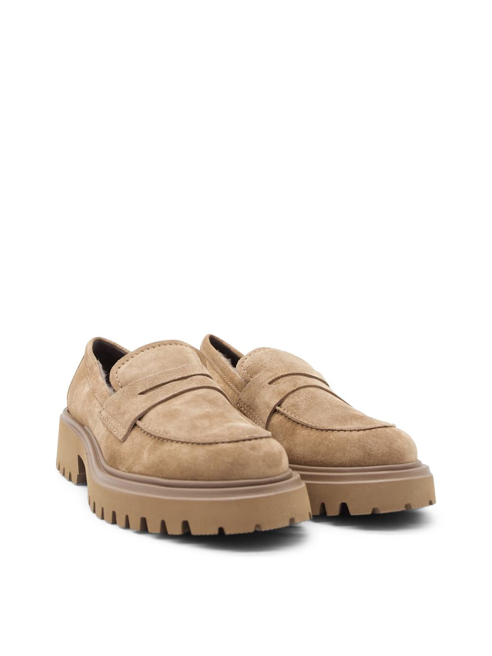 COLLEGE LOAFER IN CAMEL SUEDE WITH INTERNAL FUR