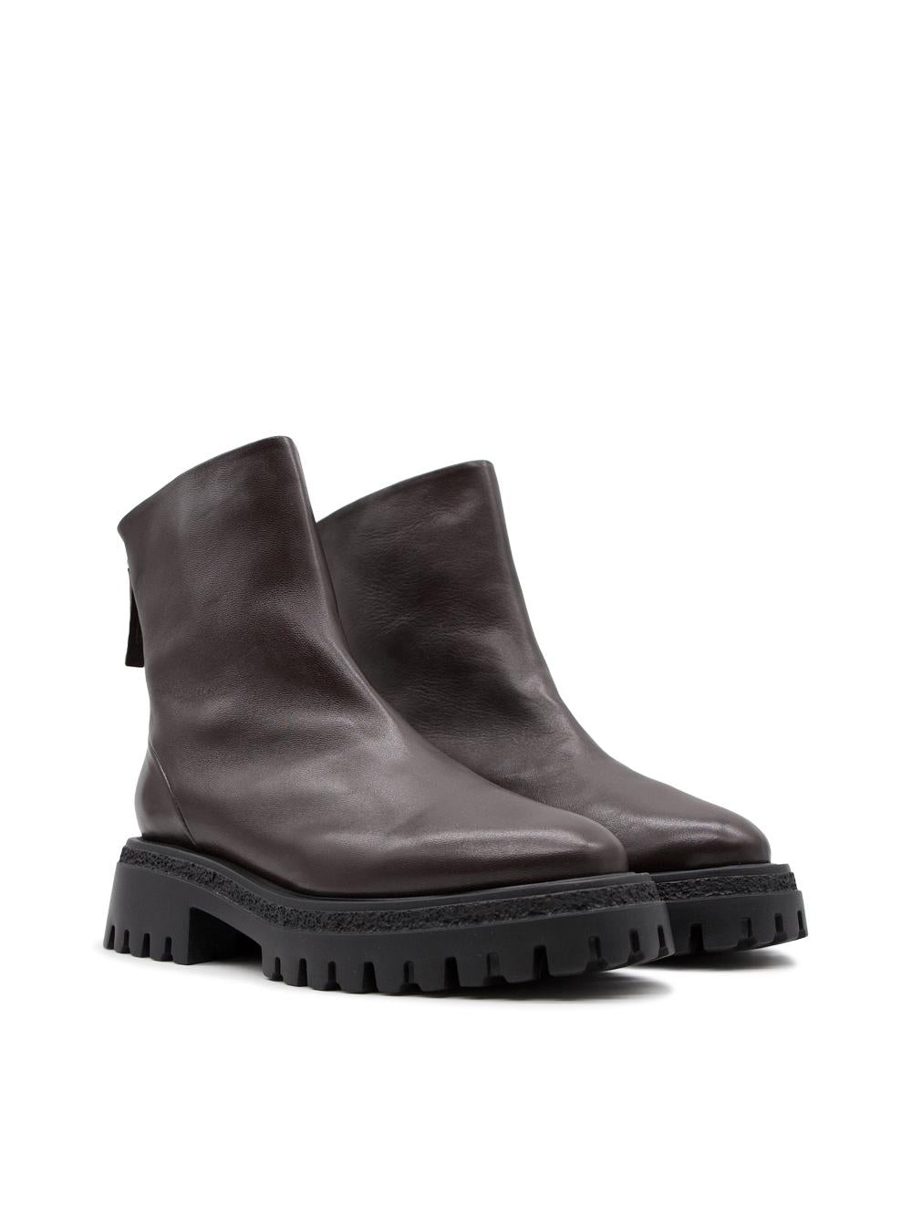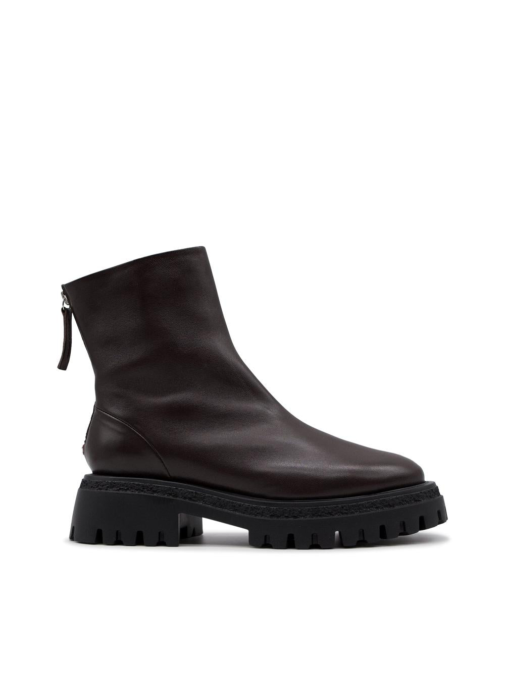 SOFT LEATHER STRETCH BROWN ANKLE BOOT WITH ZIP