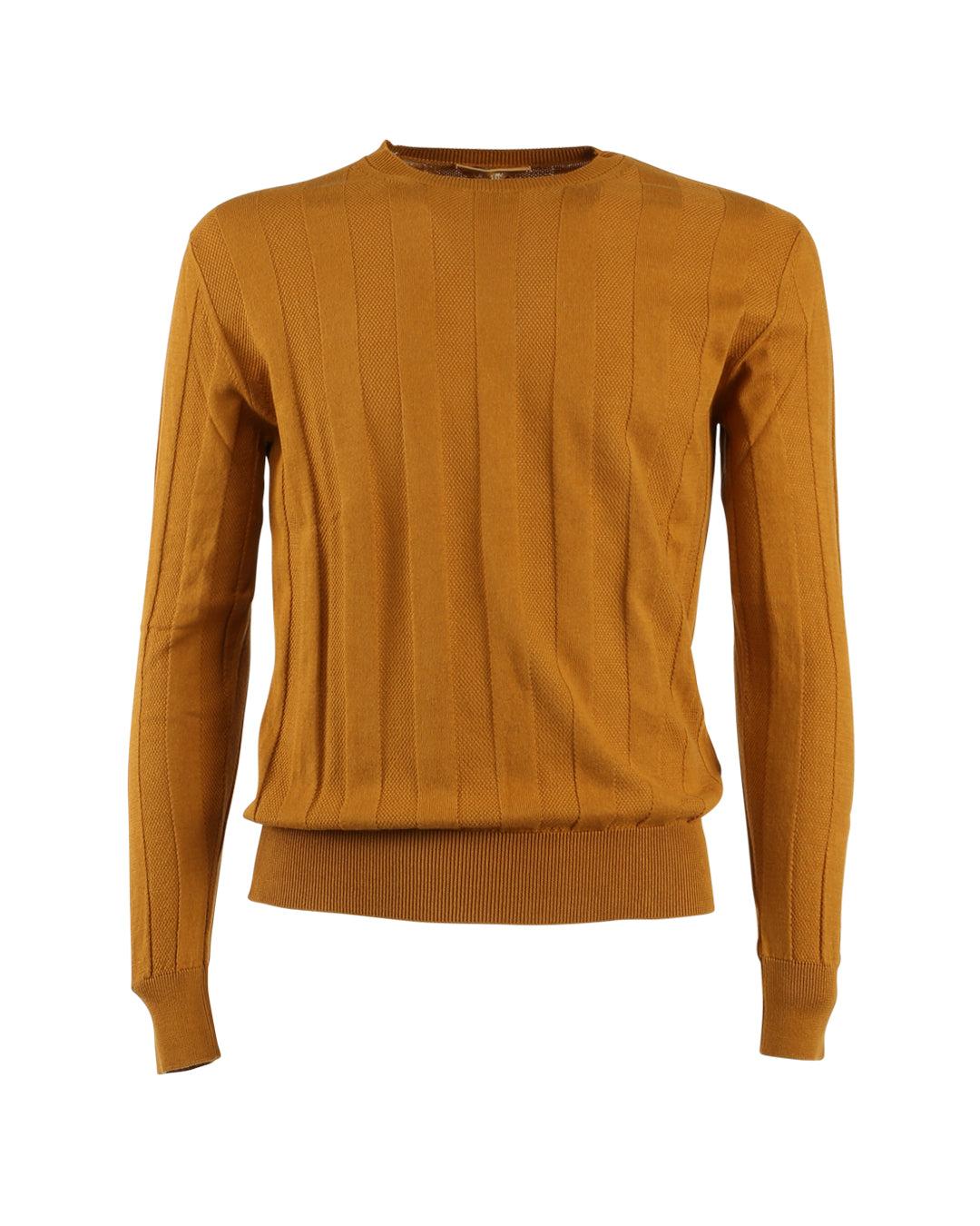 Knitted ribbed crewneck sweater in pure mustard cotton