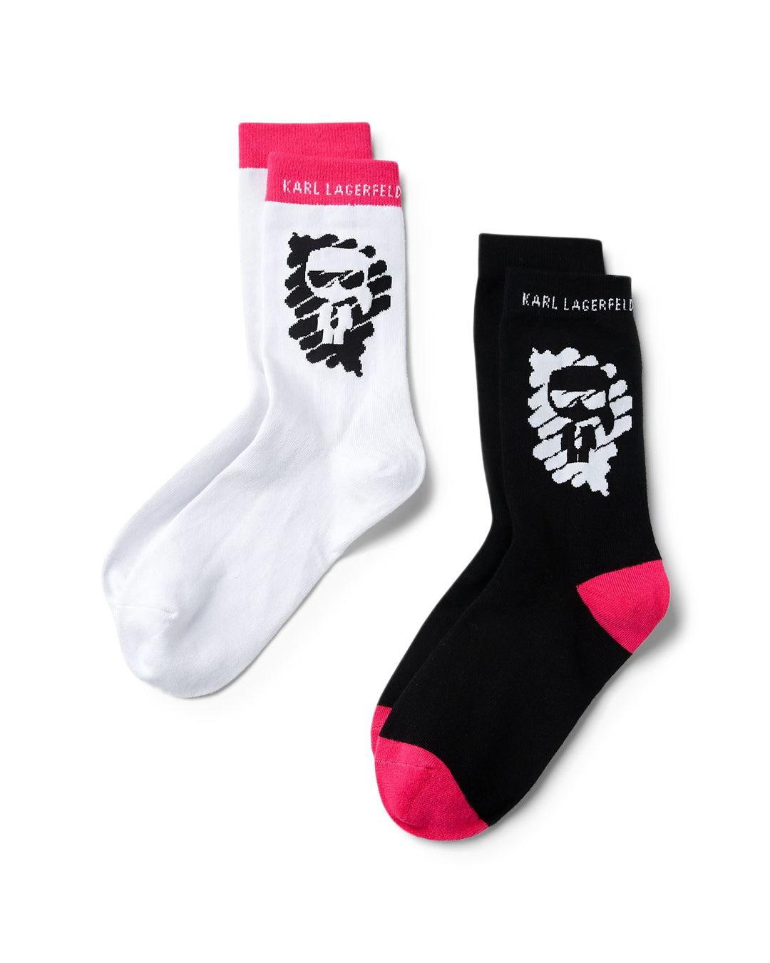 black and white graffiti inspired socks with fuchsia accents - Karl Lagerfeld logo on the edge