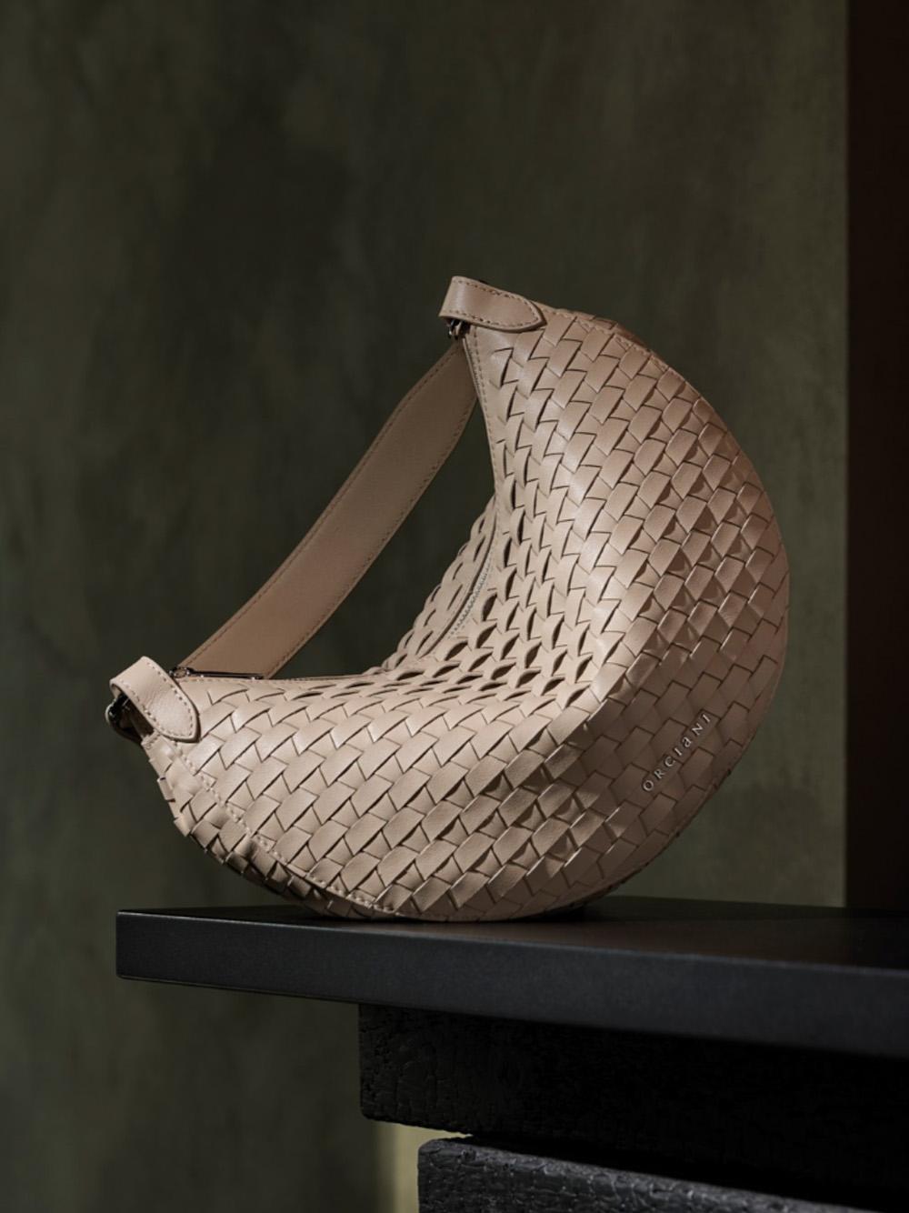 Dumpling Nappa Woven Midi Shoulder Bag in Braided Leather