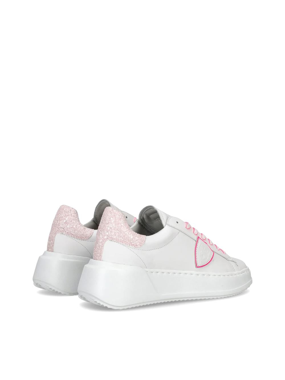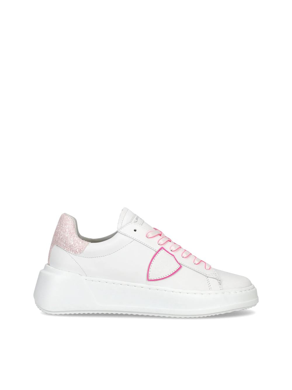 - Materials: Sneaker in white calf leather with fluo print and glittery tone-on-tone patch.