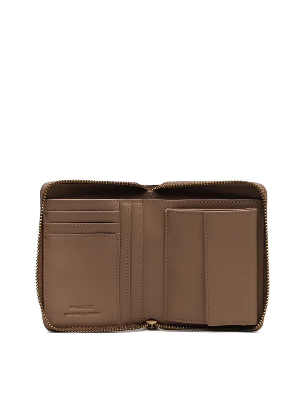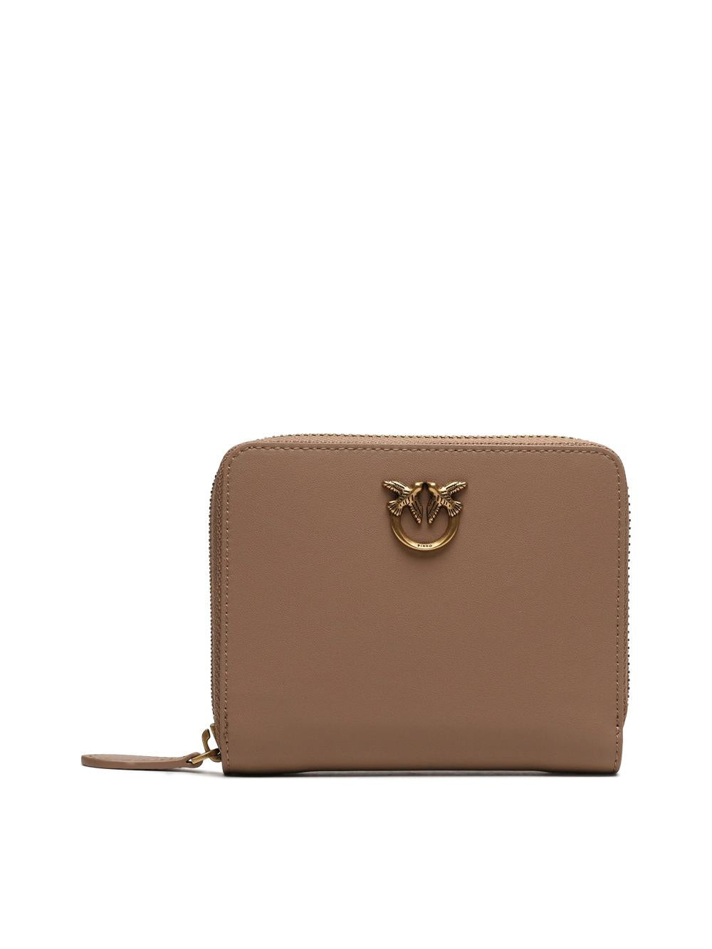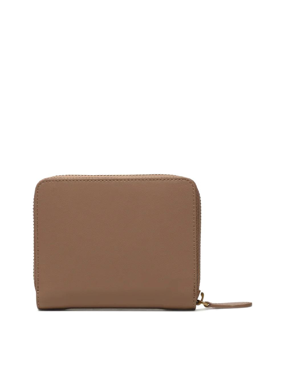 Square zip-around wallet in beige leather