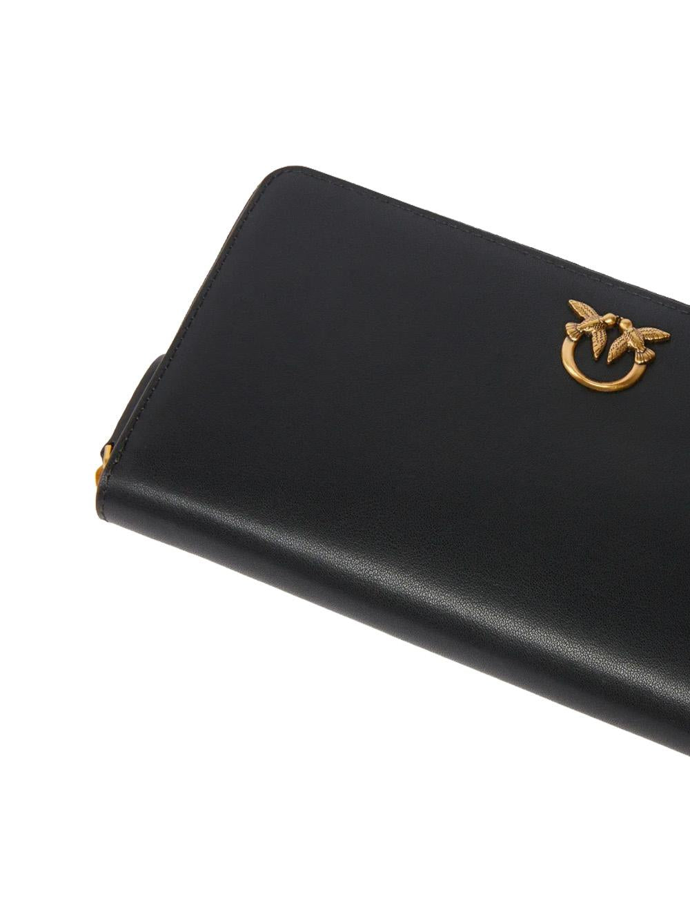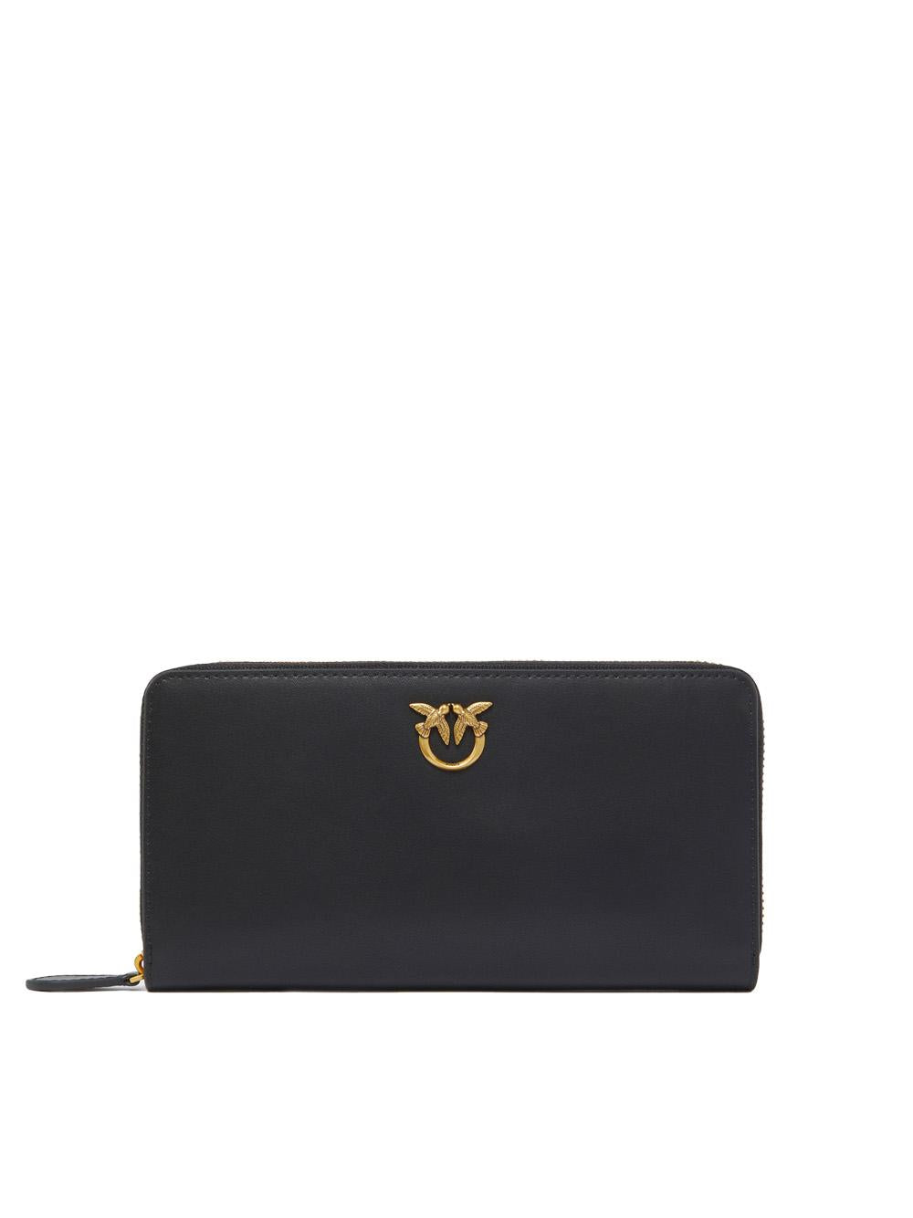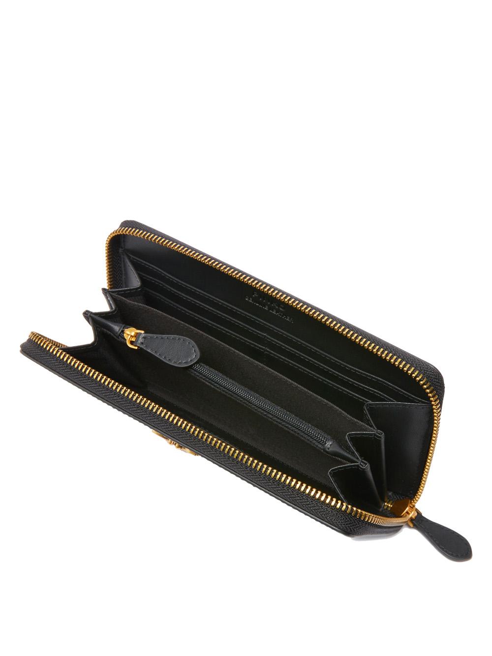 black leather zip-around wallet