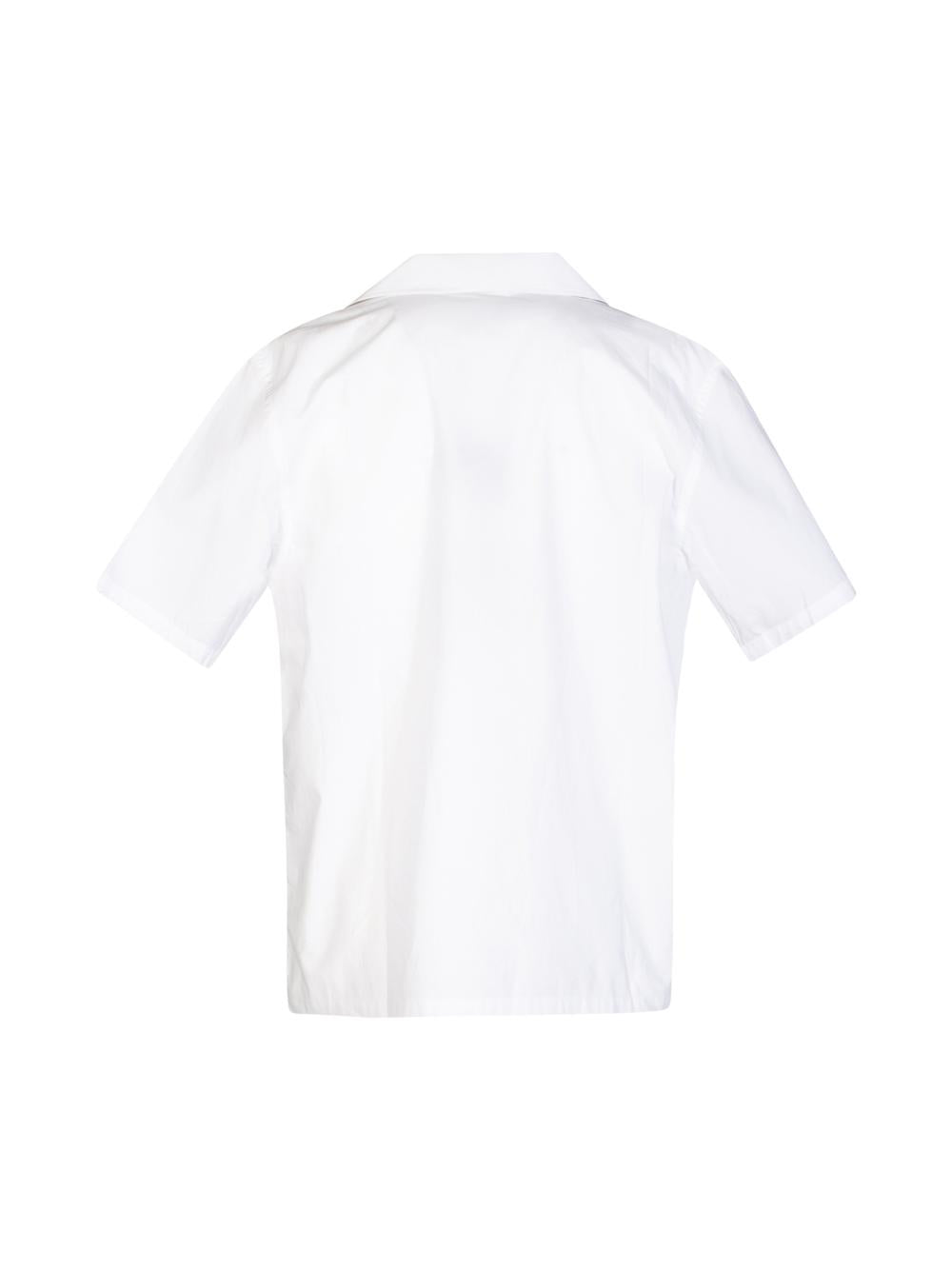 • Colletto alla cubana, chiusura frontale con bottoni, maniche corte, dettaglio sul fianco, tasca sul petto, orlo dritto, vestibilità ampia