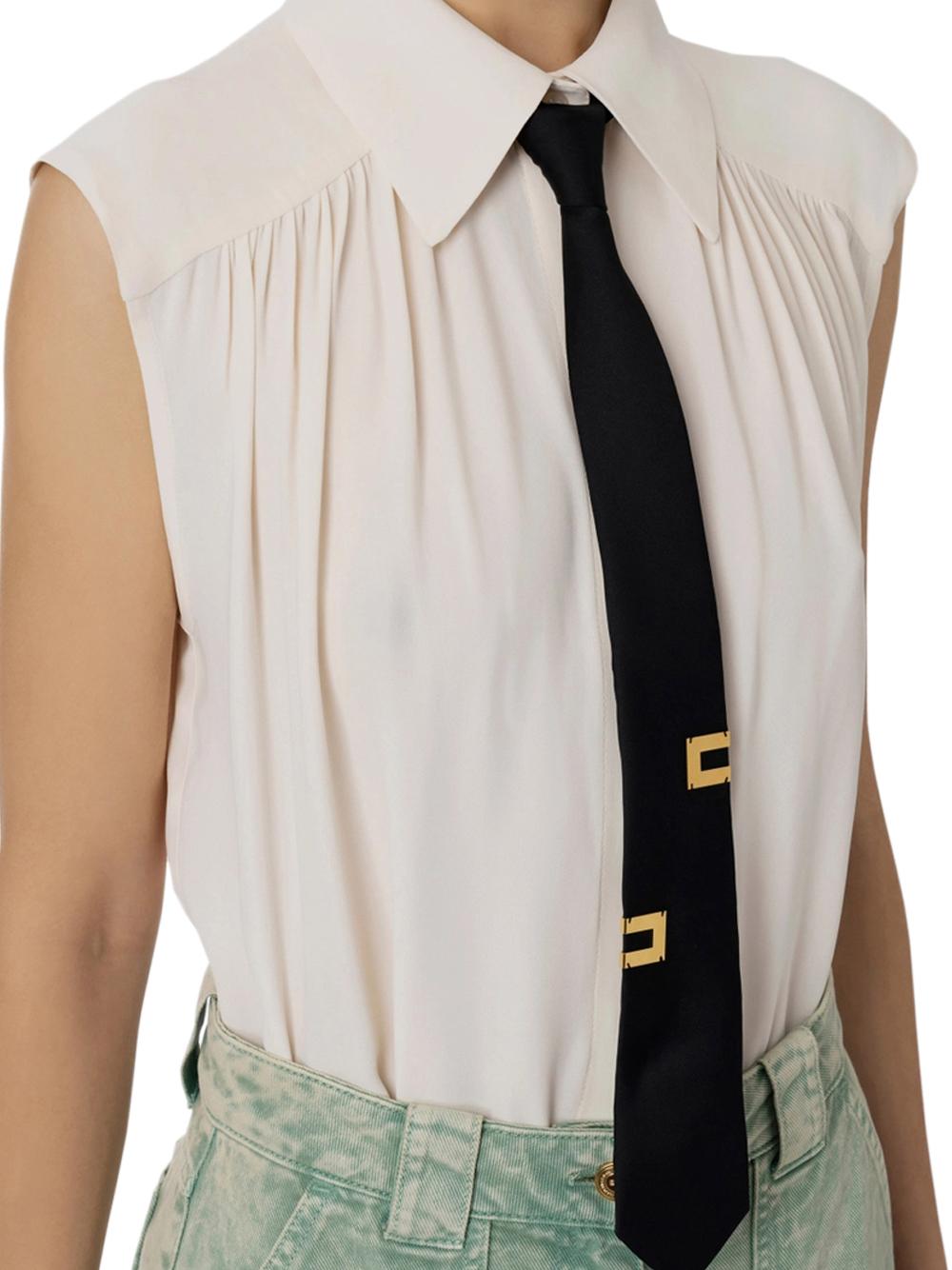 Camicia svasata in georgette di viscosa con cravatta lettering