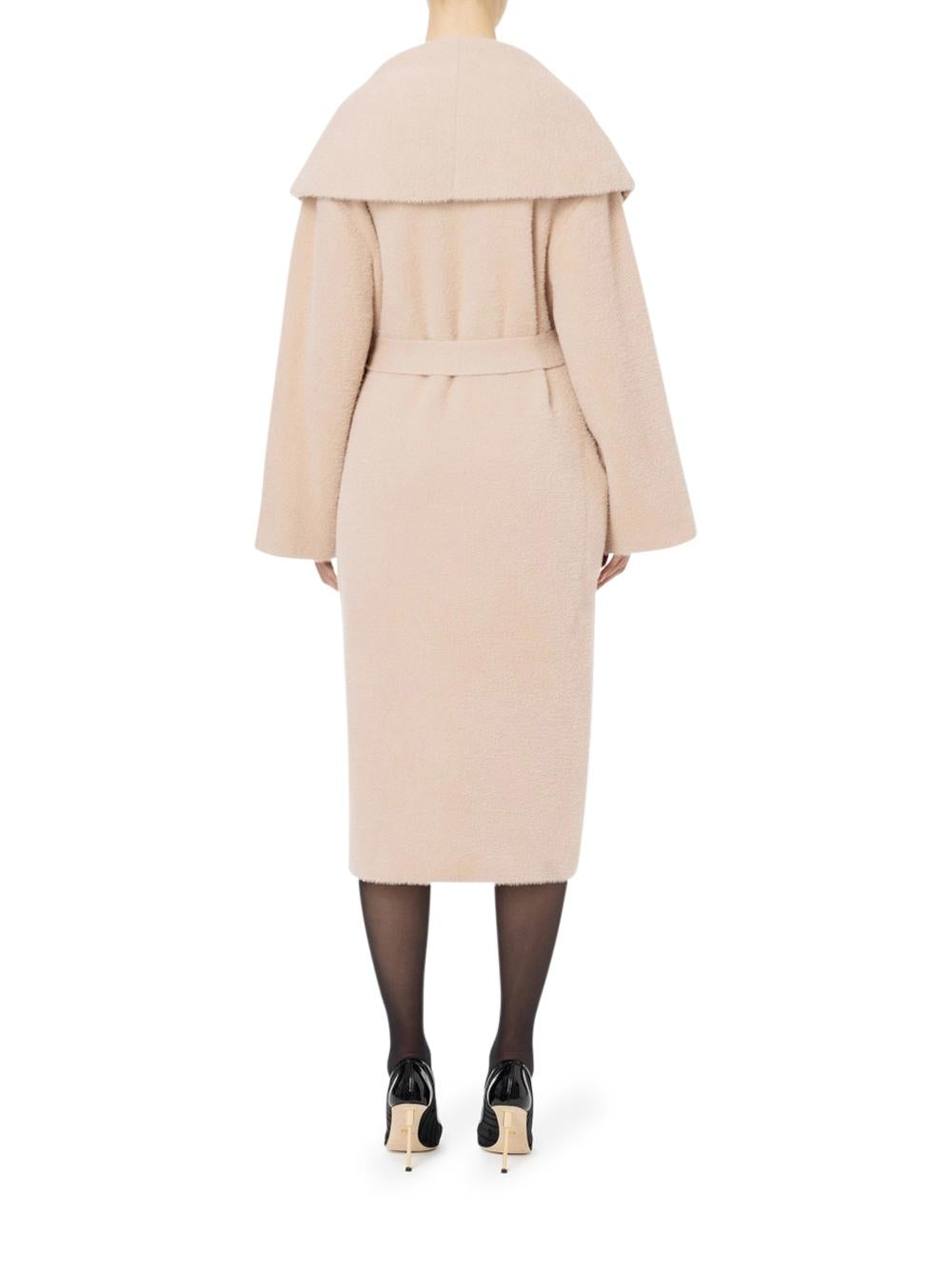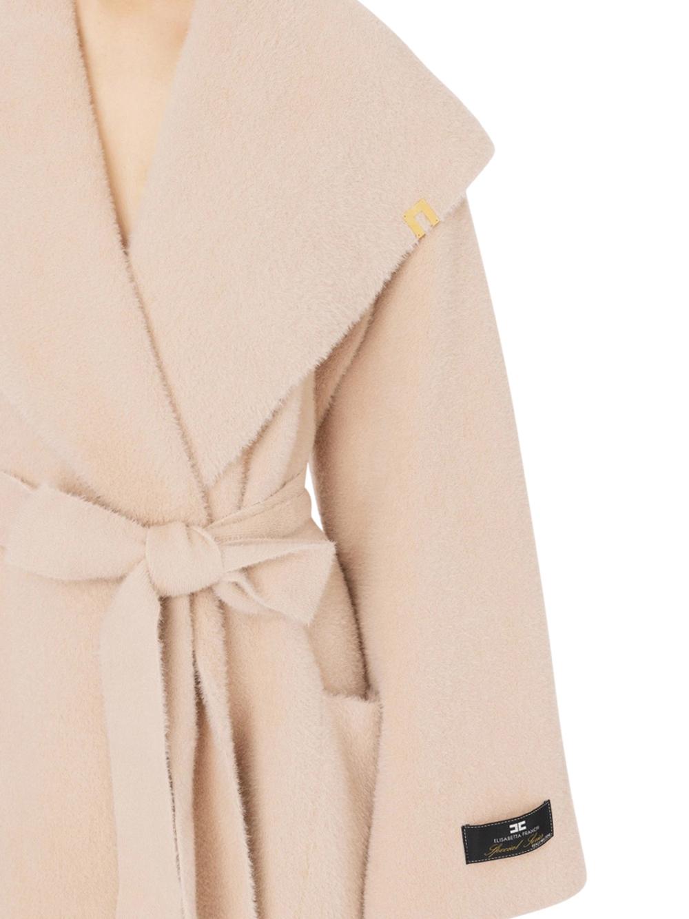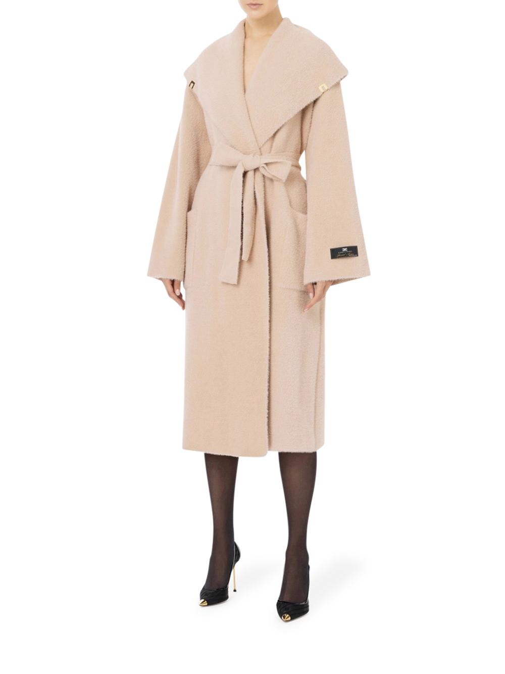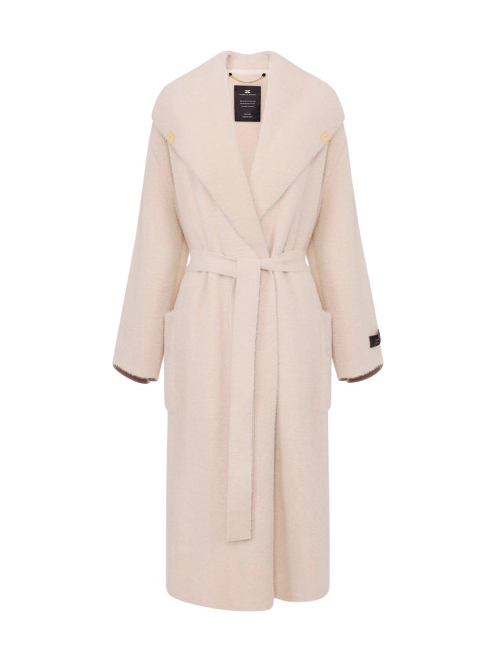 - Cappotto in maglia punto pelliccia dalla linea a vestaglia con revers a scialle.