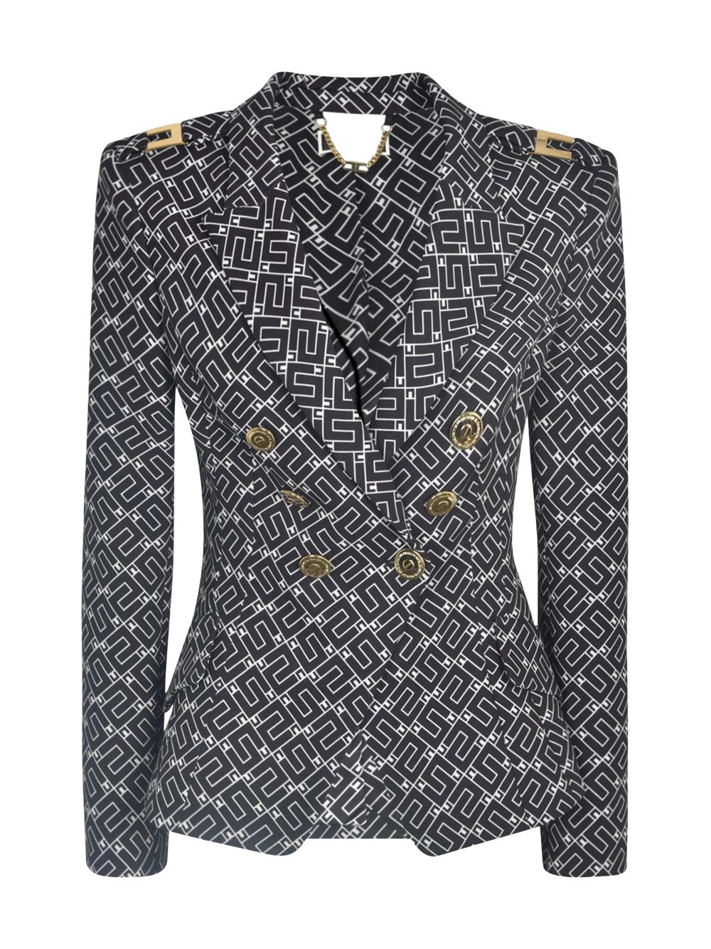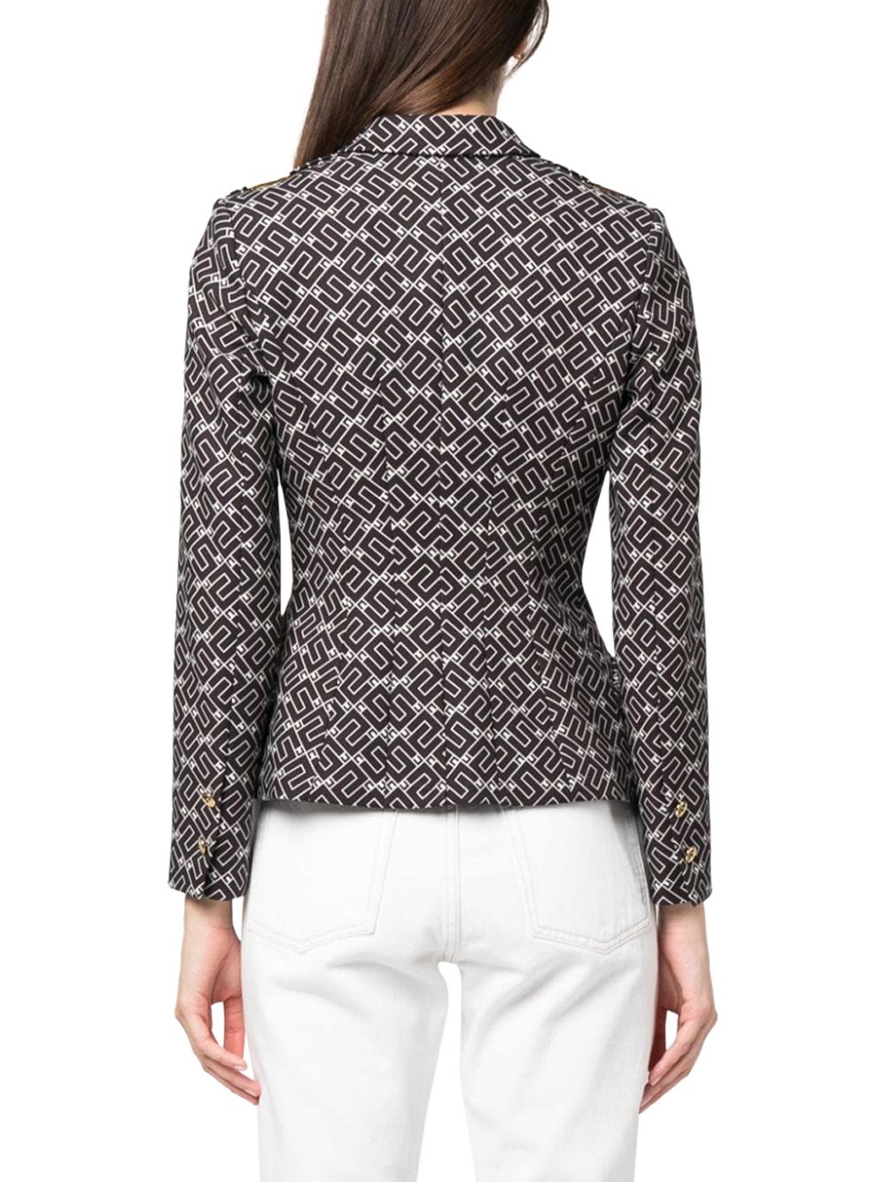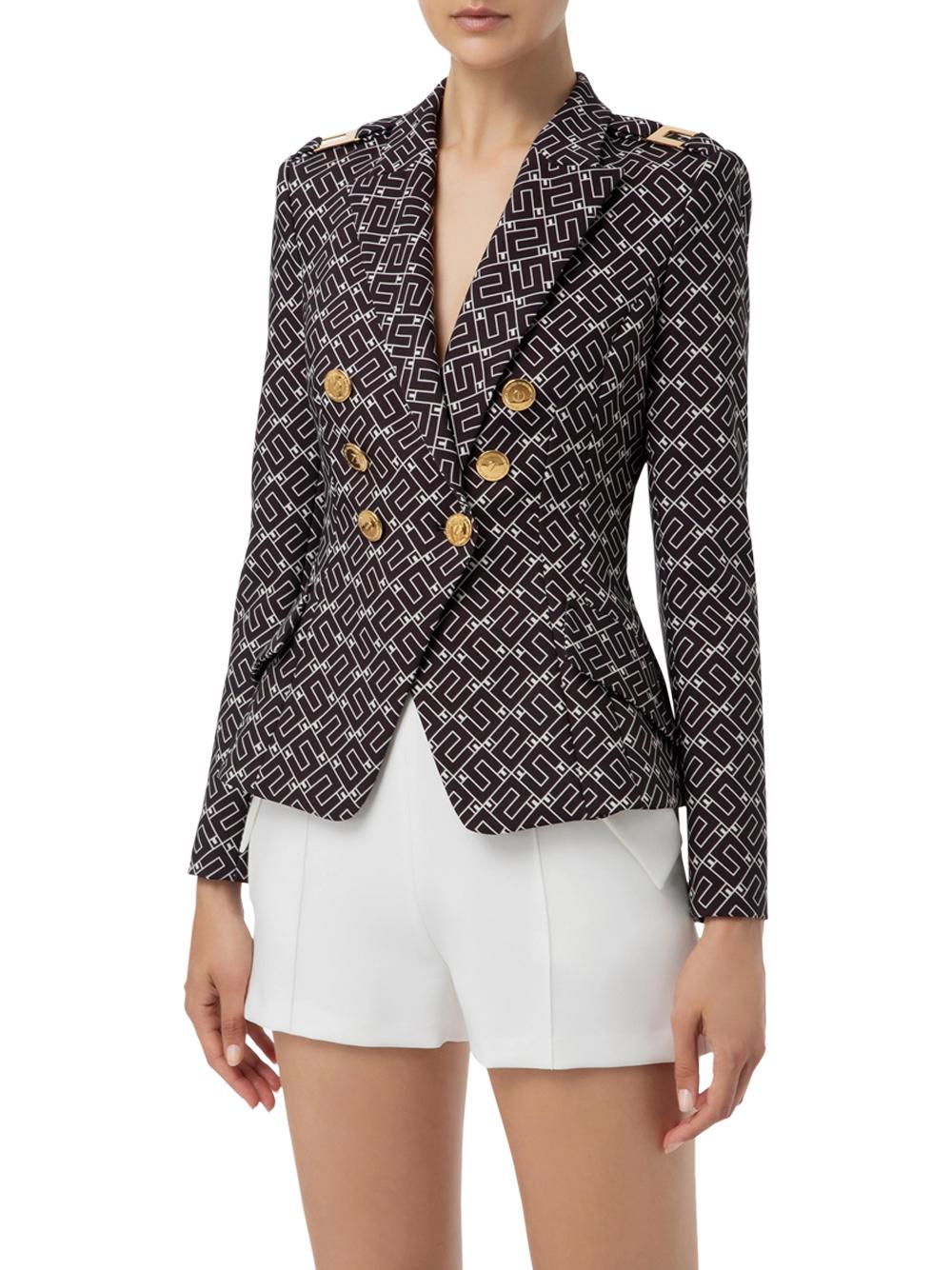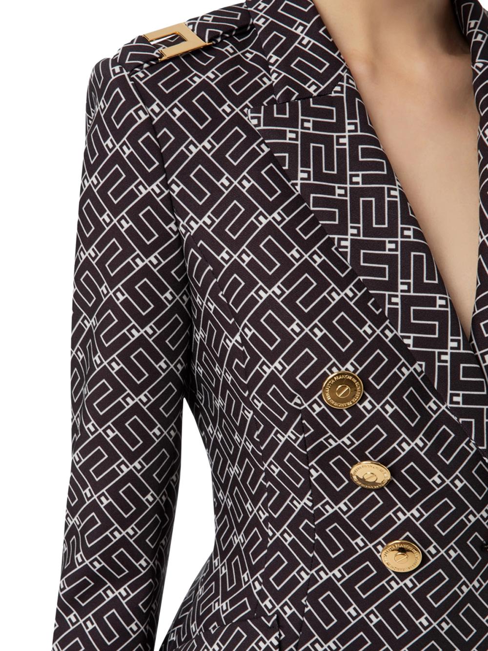 Giacca doppiopetto in crepe stampa logo nero/burro