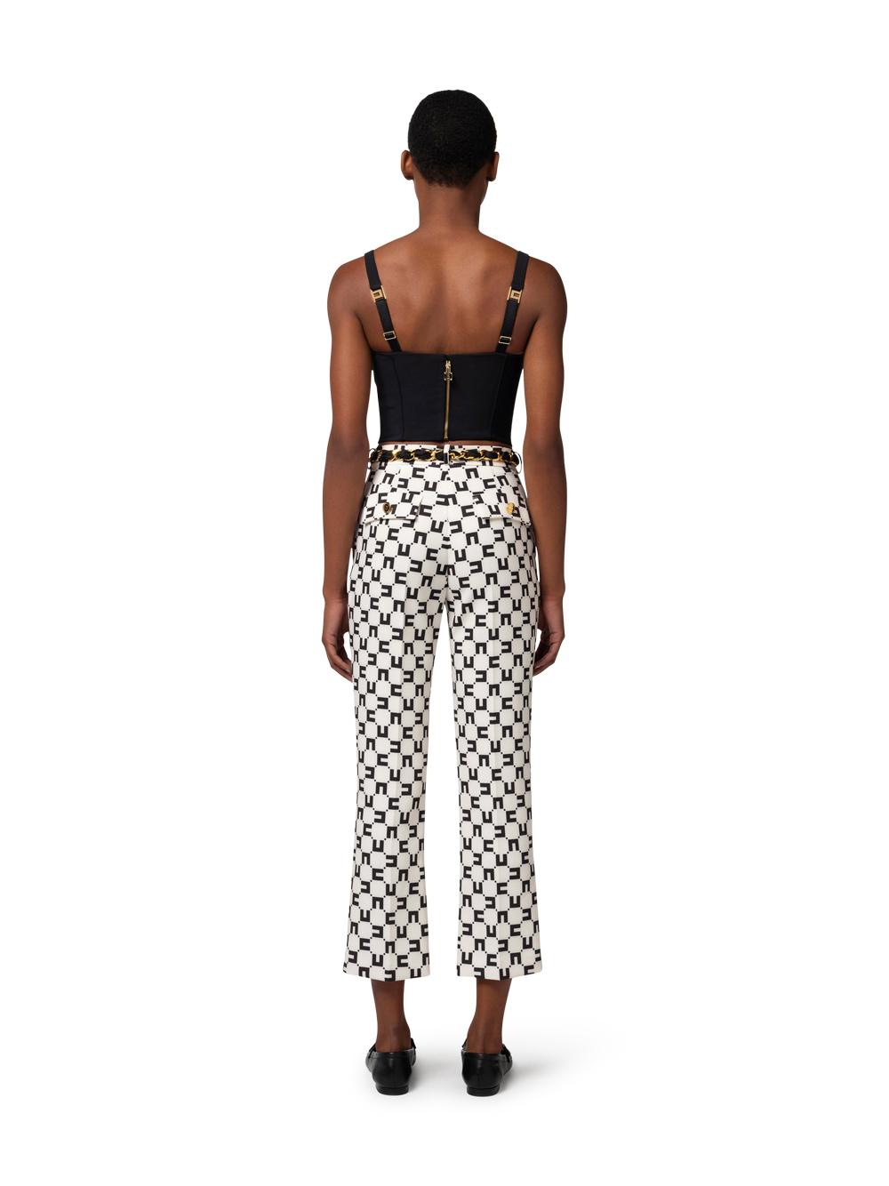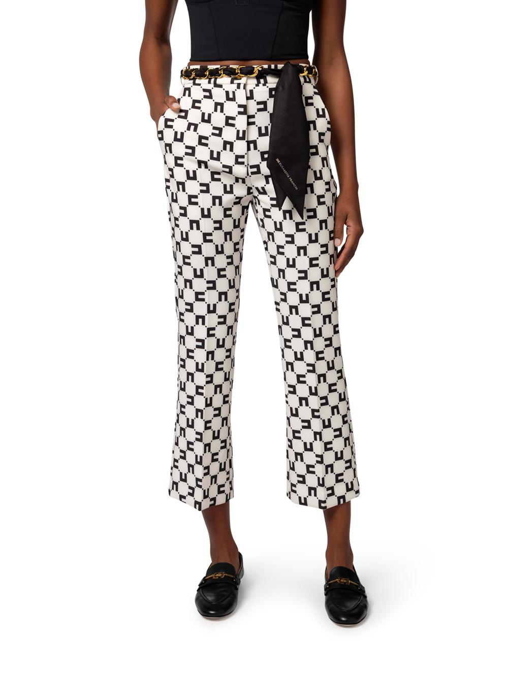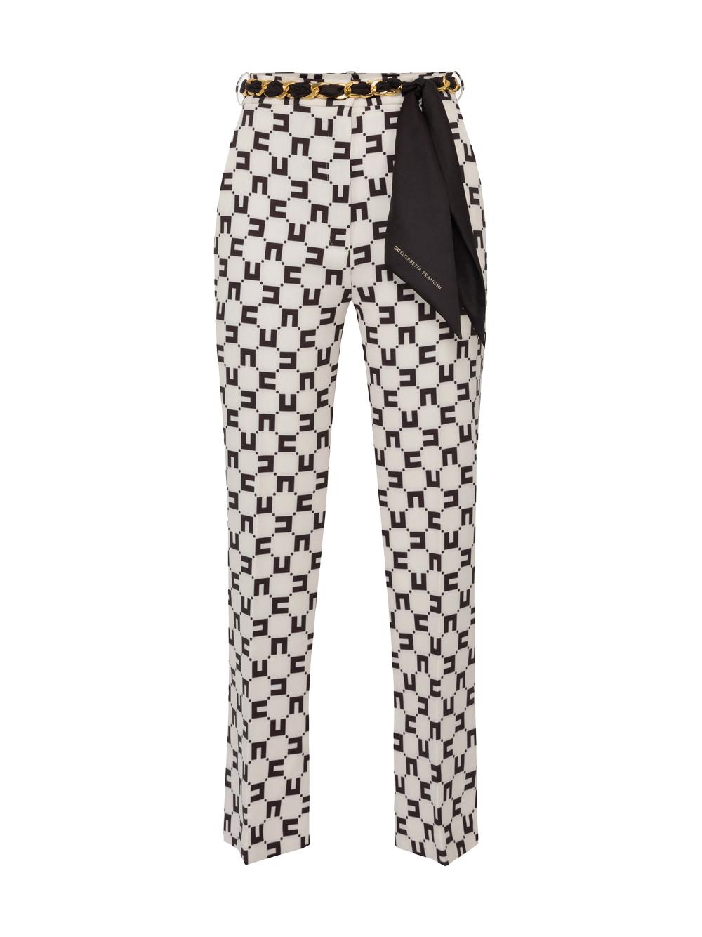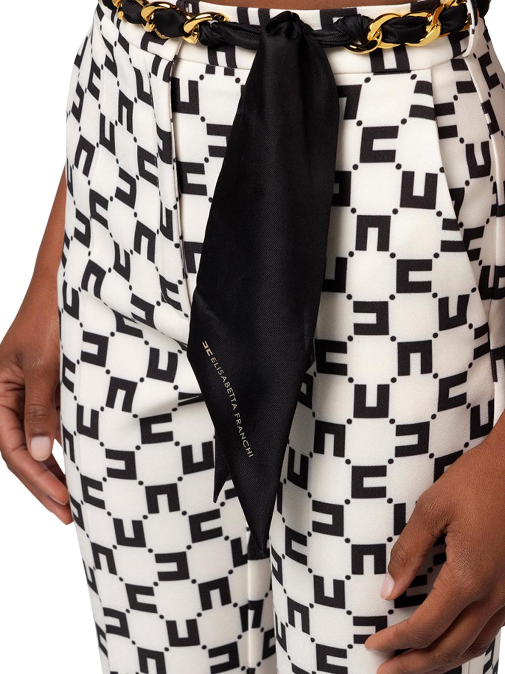Pantalone a zampetta in crêpe stretch stampa logo con cintura foulard