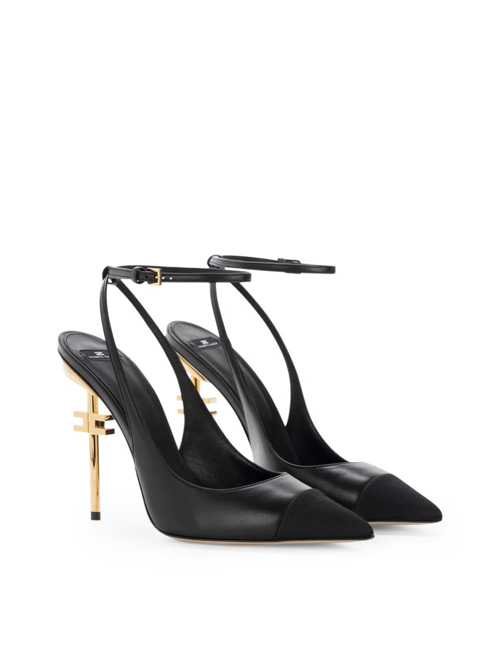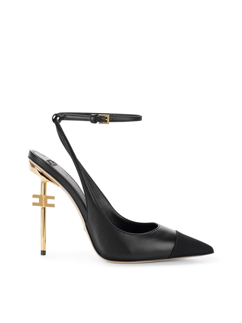 - Slingback in nappa con puntalino in tessuto gros grain e cinturino regolabile alla caviglia
