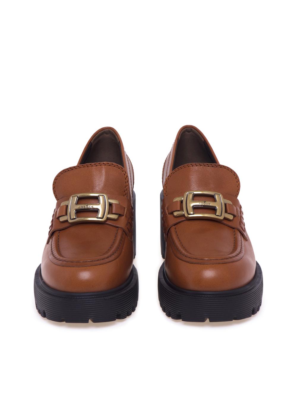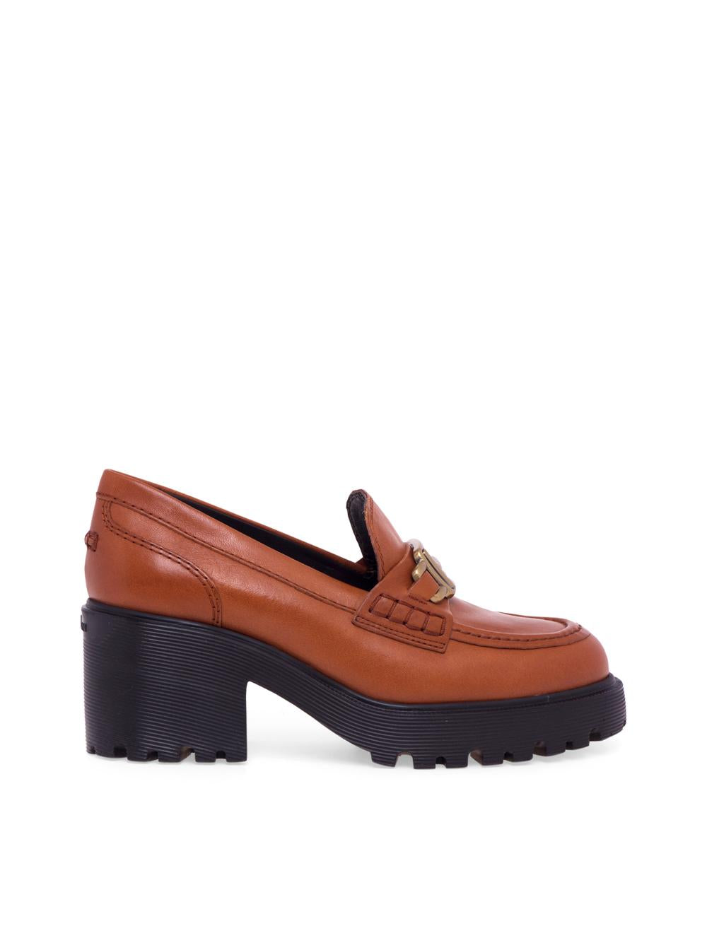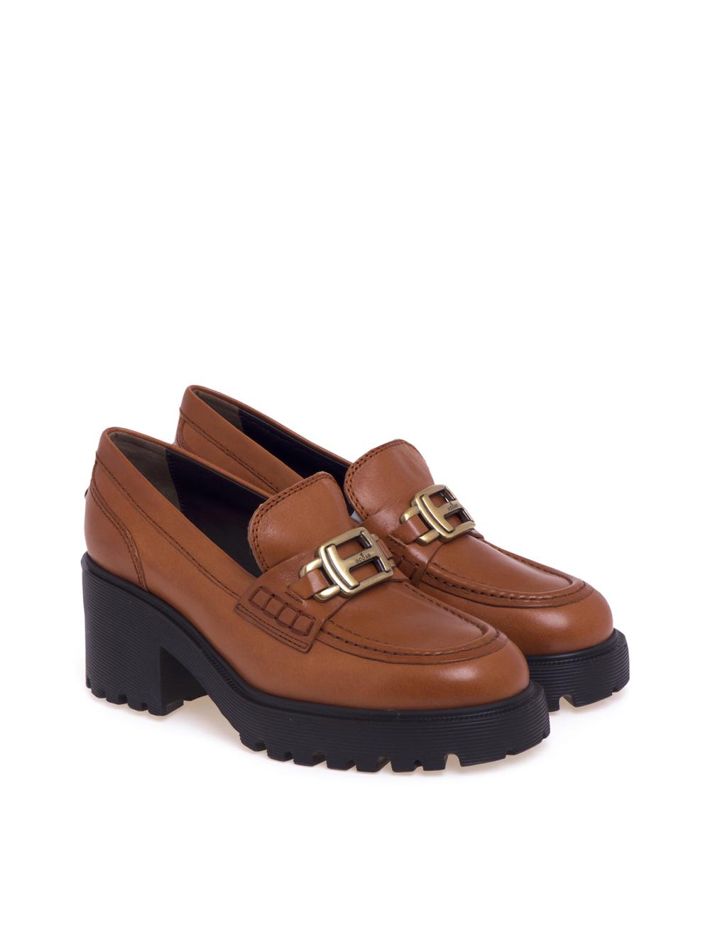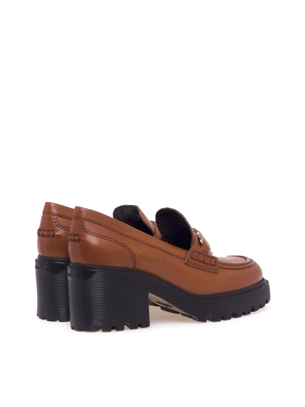 Mocassino H649 con morsetto e tacco color Brandy