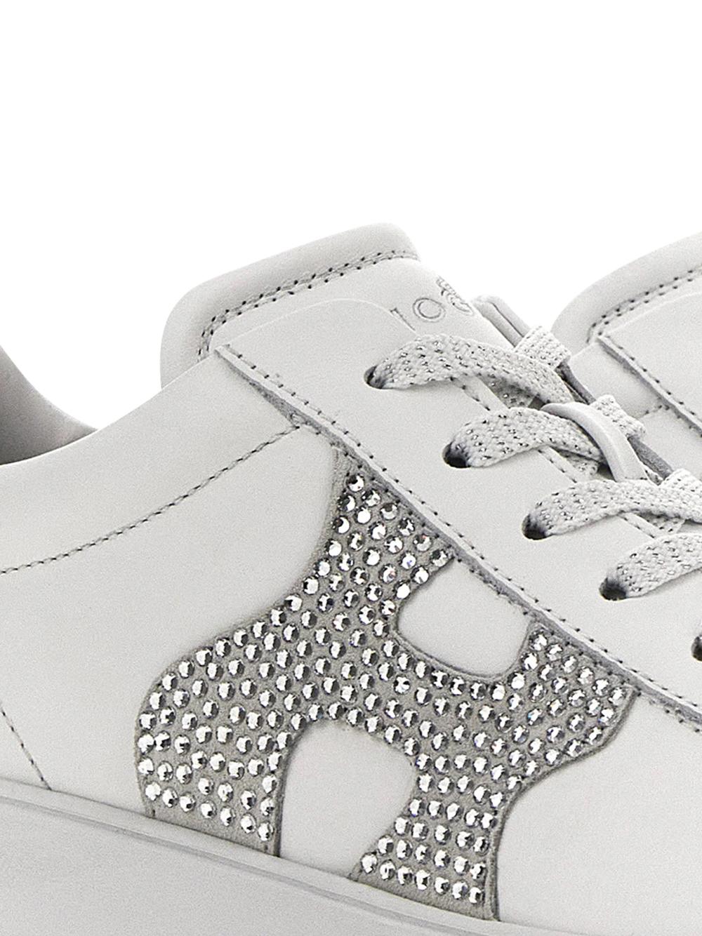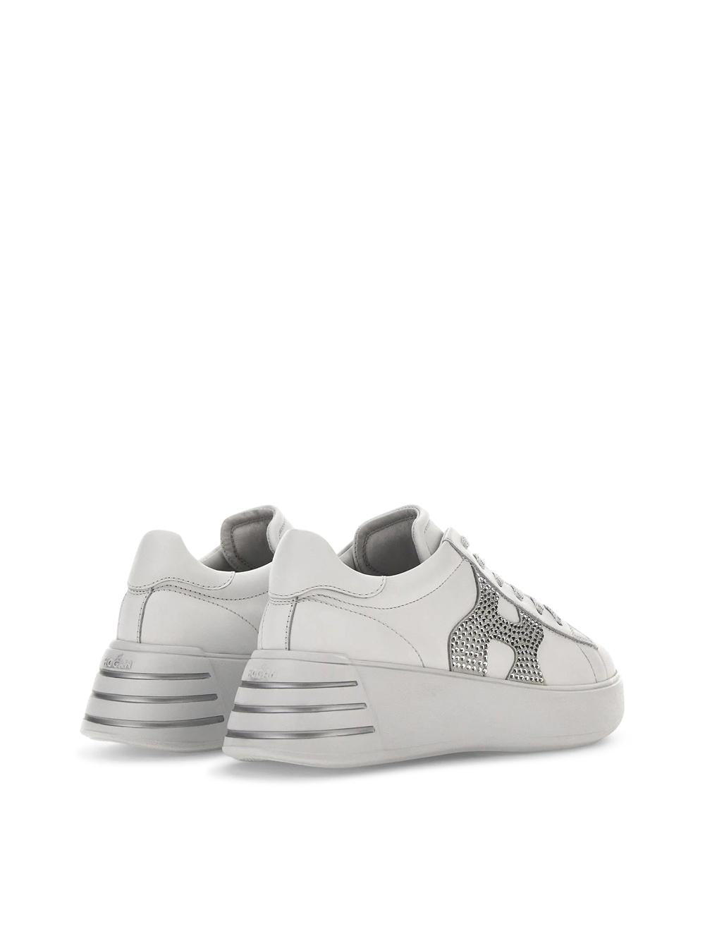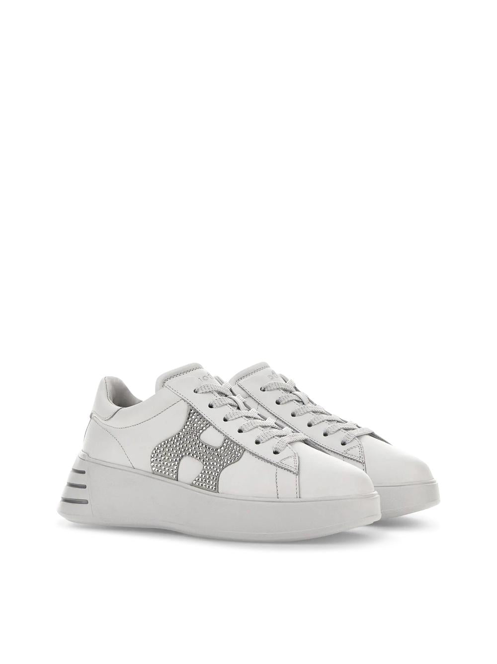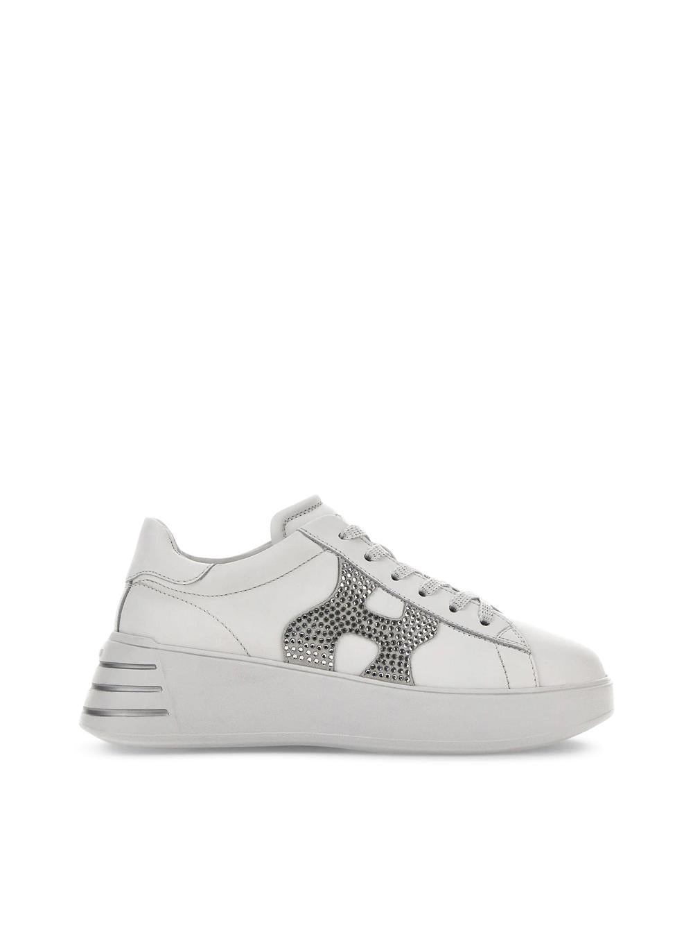 SNEAKERS REBEL IN PELLE BIANCO CON LOGO IN STRASS ARGENTO