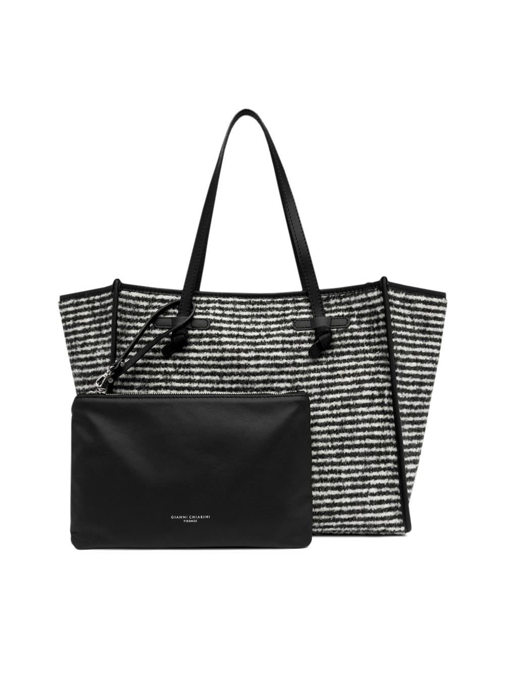 - La shopping Marcella by Gianni Chiarini Firenze, è realizzata tessuto pullover con trama a righe orizzontali.