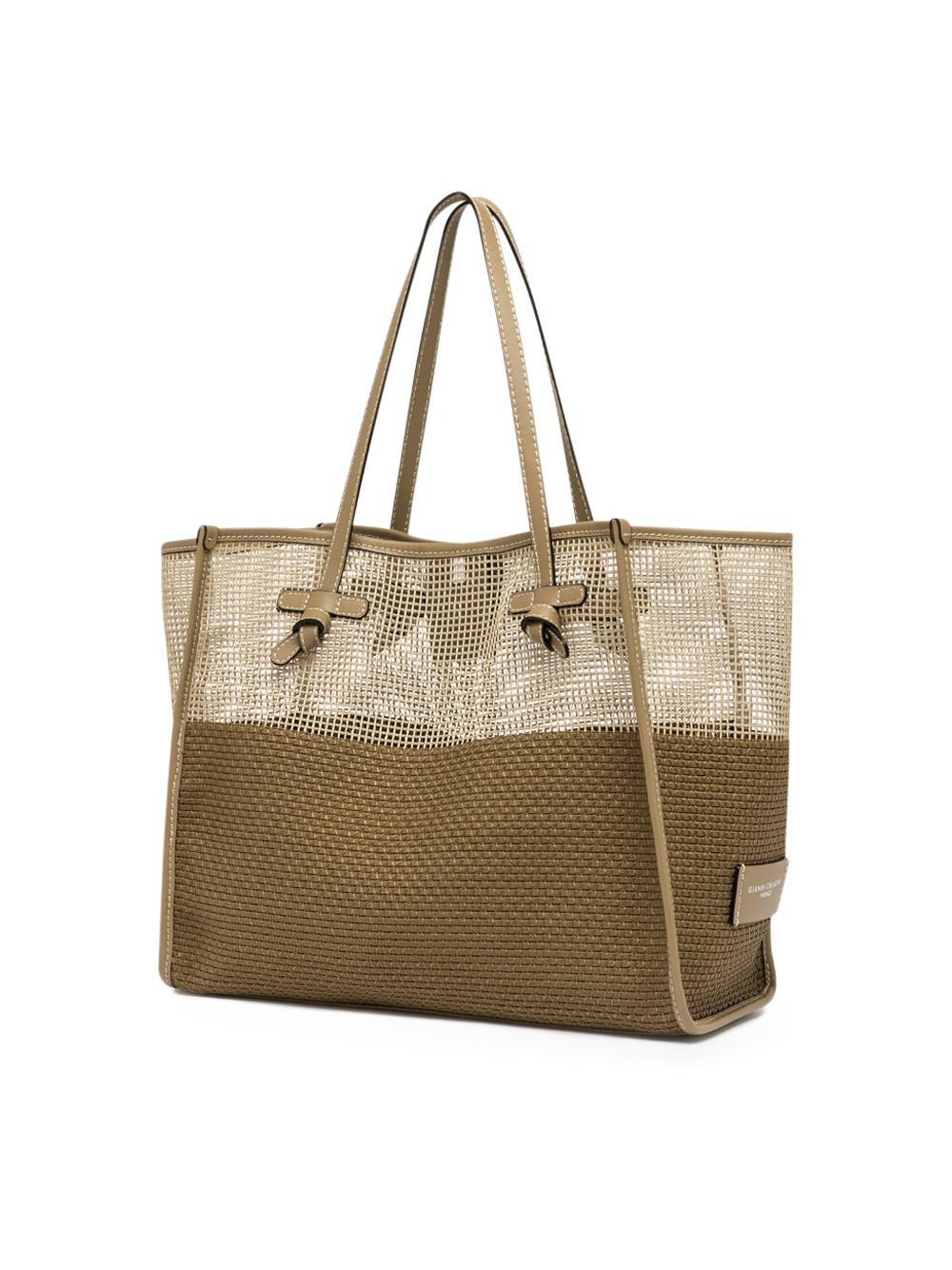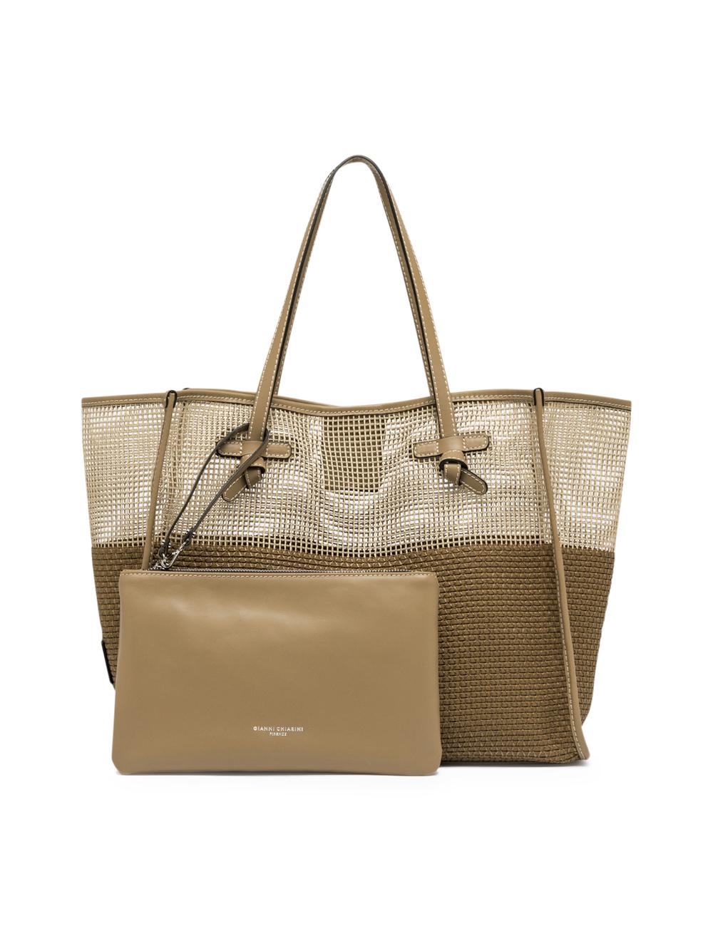 - La shopping by Marcella Gianni Chiarini leggera e dinamica è realizzata in tessuto effetto rete a due colori.