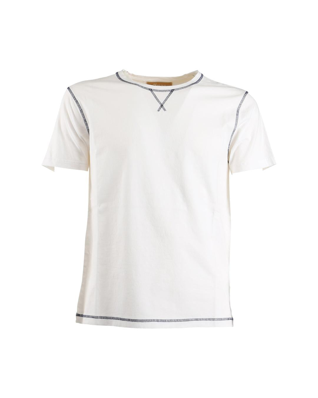 T-shirt in cotone bianco con cuciture a contrasto blu