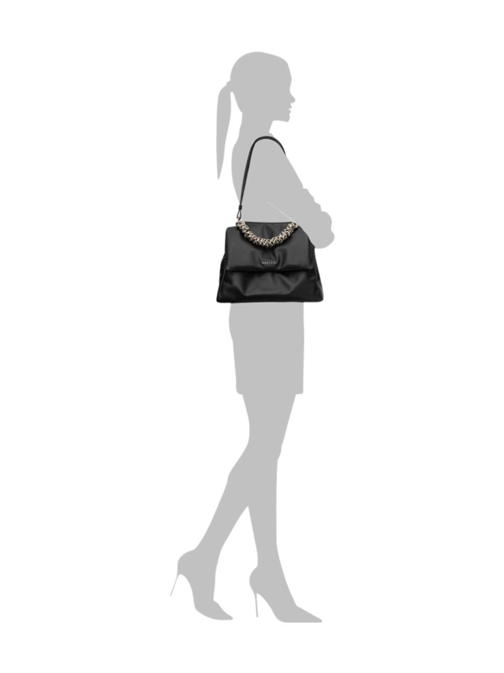 - Funzionalità: apertura a scomparsa sulla parte alta della patta, manico in pelle e catena, tracolla regolabile removibile