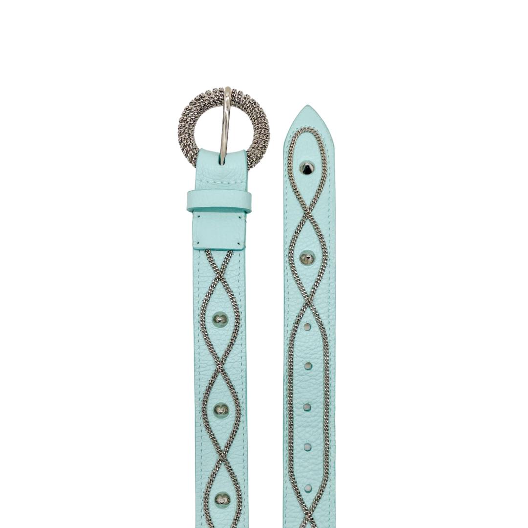 CINTURA IN PELLE AZZURRA CON DETTAGLIO DI CHAIN