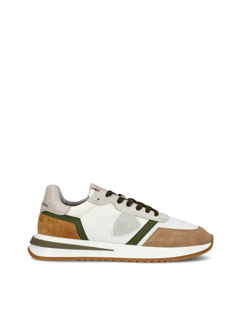 - Sneaker con tomaia in tessuto tecnico, mesh e suede, con topponcino in pelle.