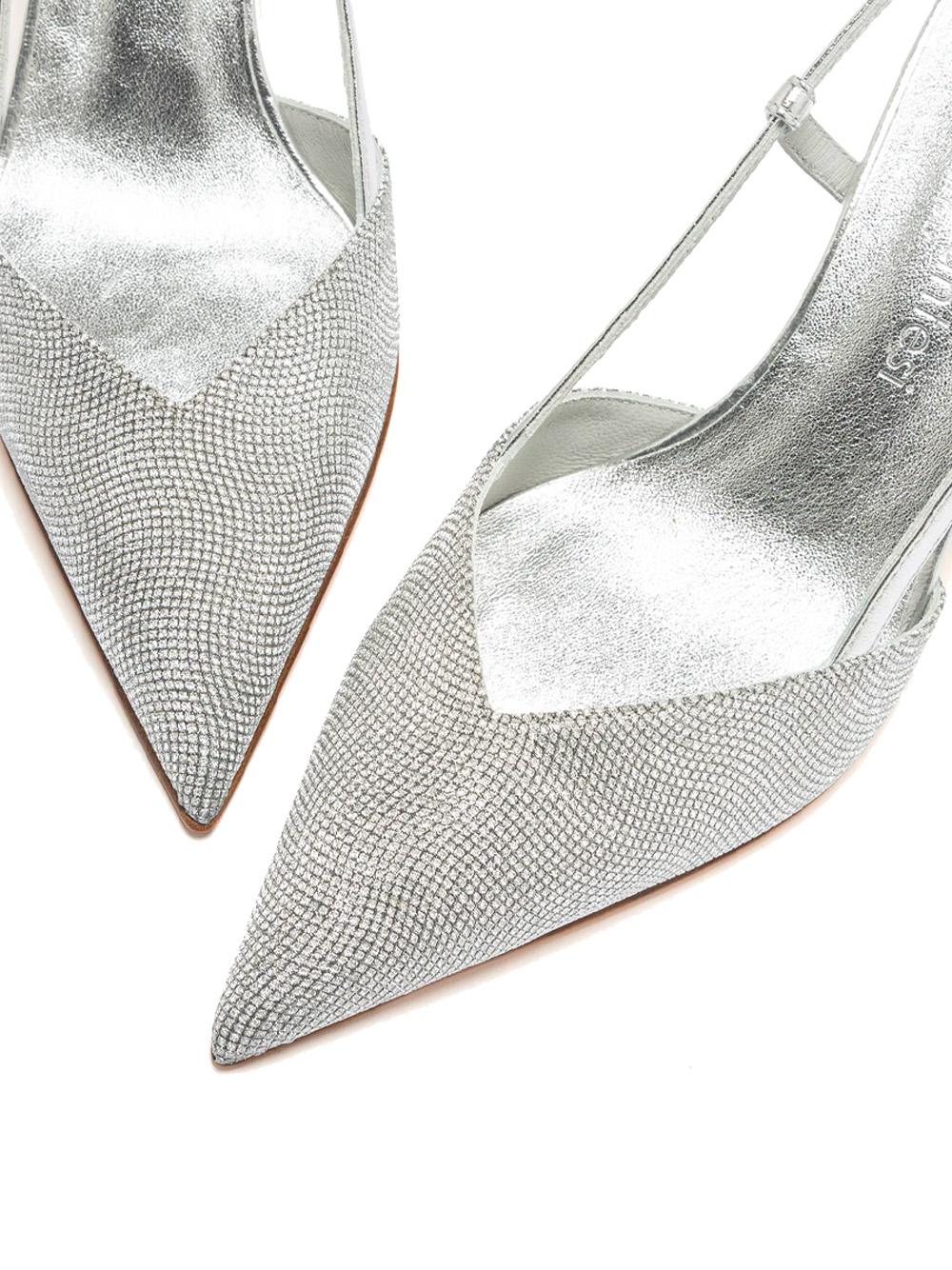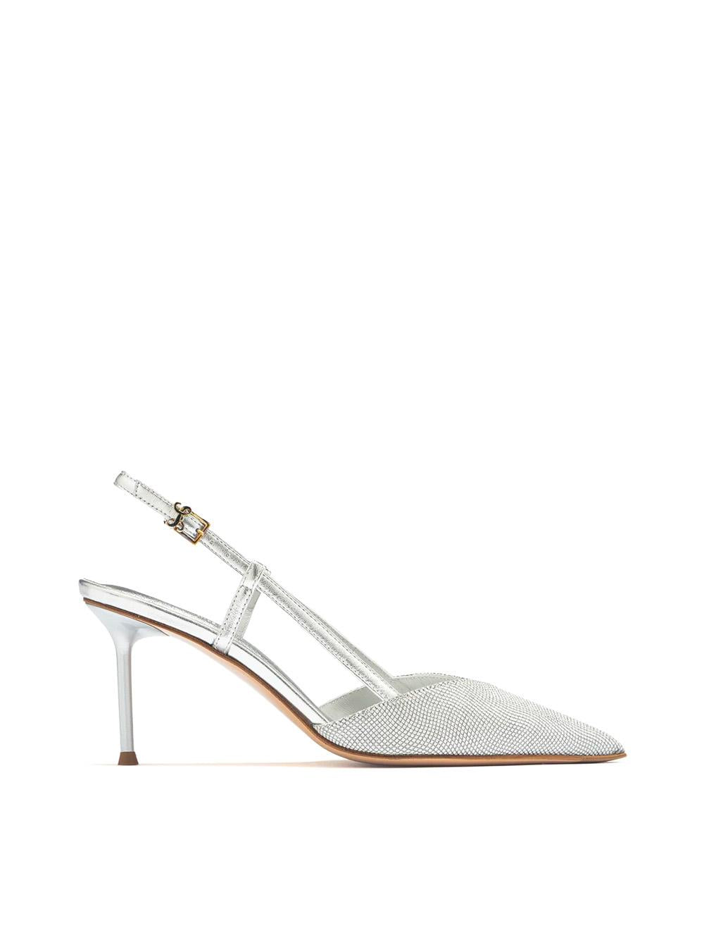 Slingback in pelle e strass con tacco 7cm