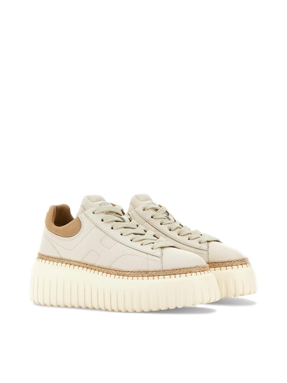 Sneakers Hogan H-Stripes in pelle burro con cuciture in corda