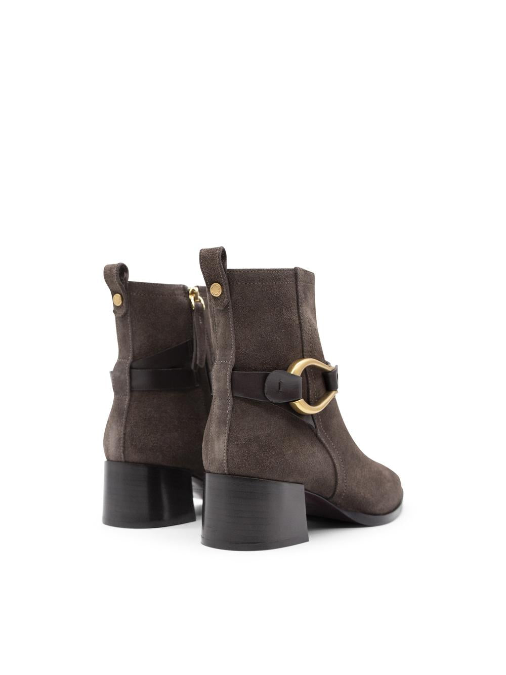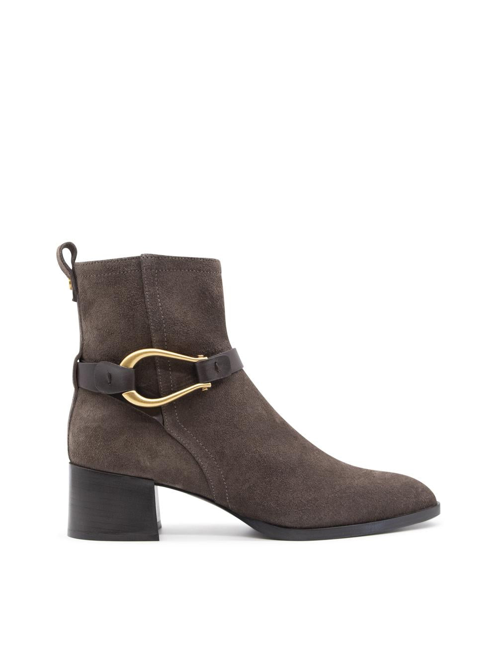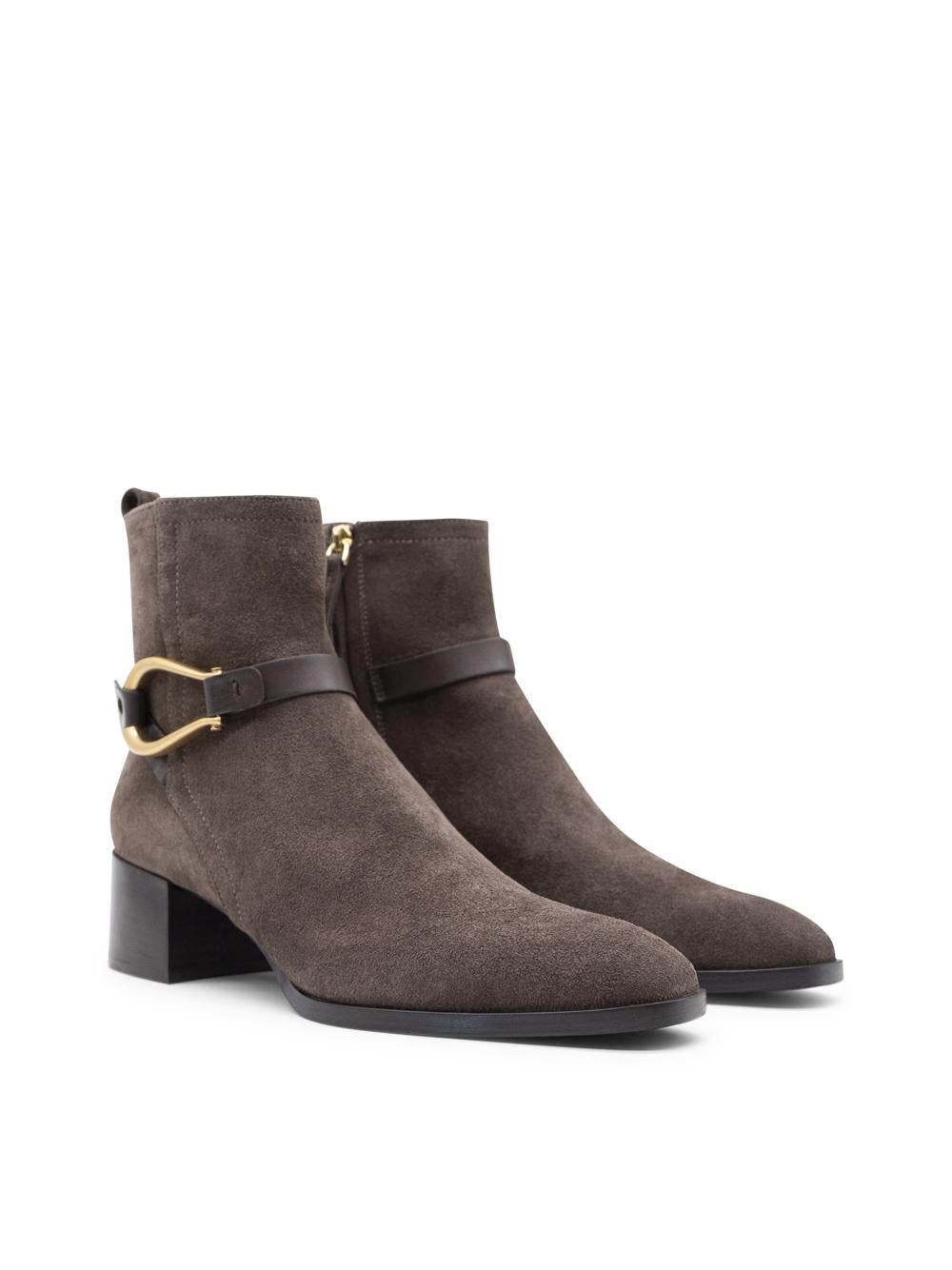 - Realizzato in pelle scamosciata marrone,lo stivaletto Cala si distingue per il suo cinturino in pelle di vitello testa di moro,impreziosito da un accessorio con galvanica oro invecchiato.