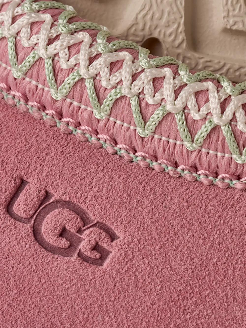 Logo UGG® stampato a caldo in rilievo, etichetta in tessuto con logo UGG® sulla soletta.